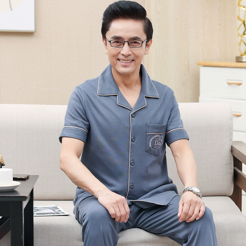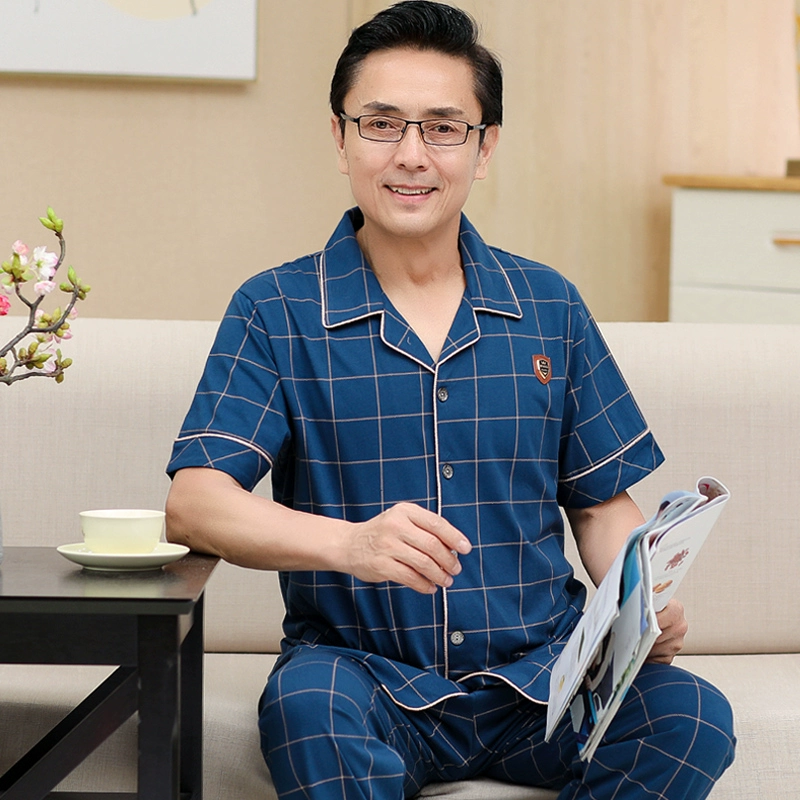 Dad Xia Men’s Pure Cotton Half-Sleeve Older Sleeve Pajamas