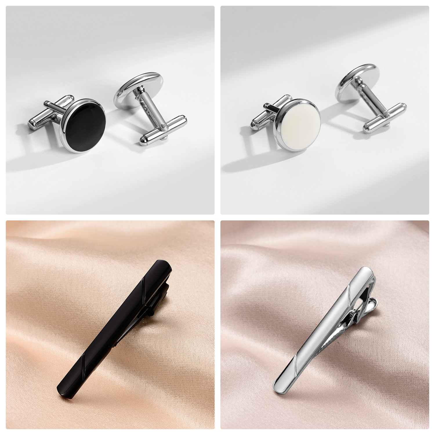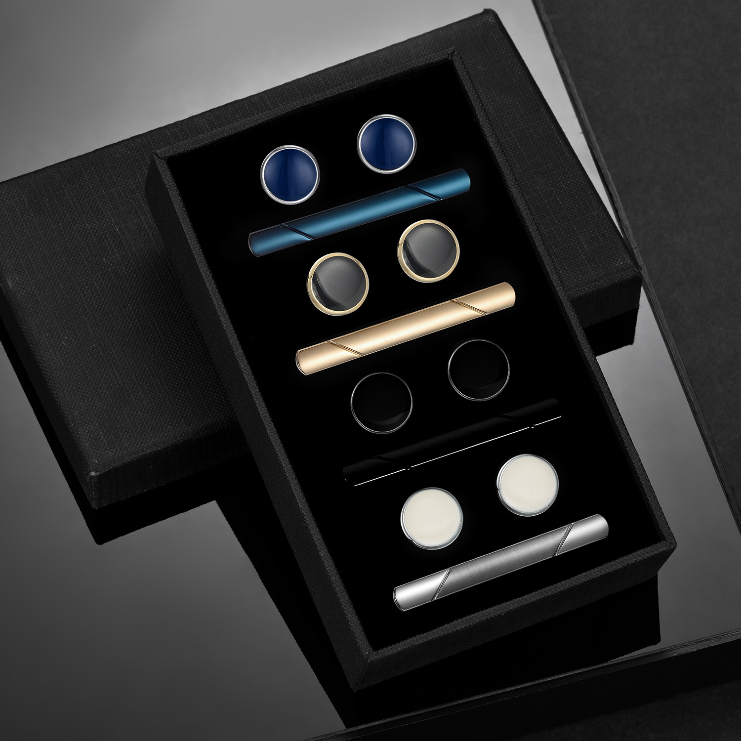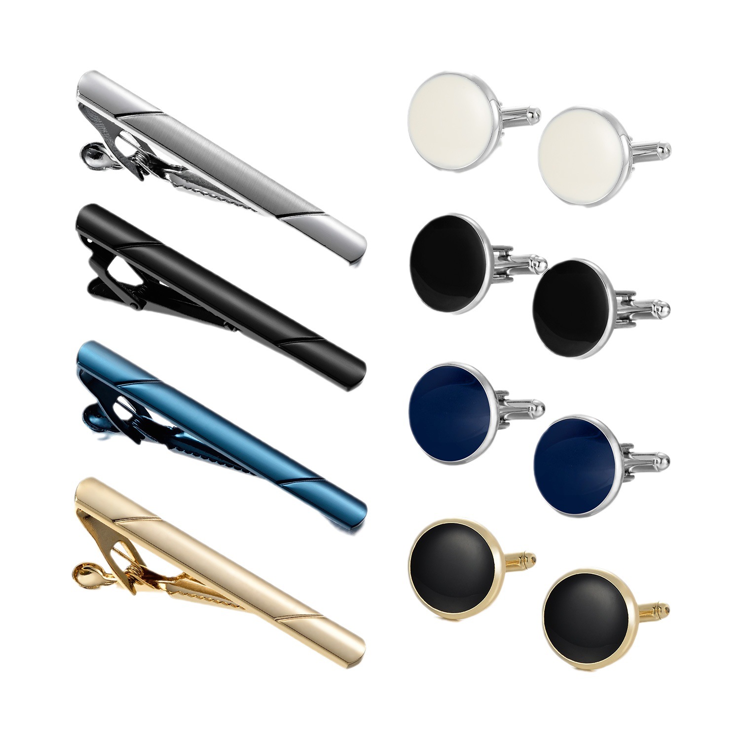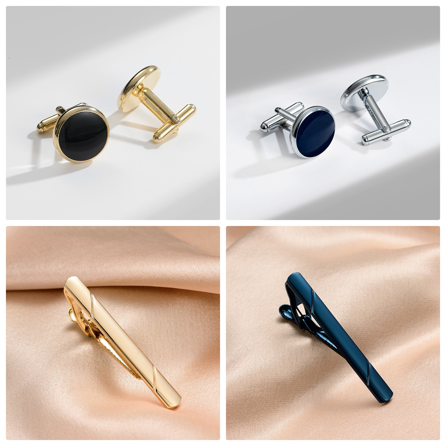| nameOriginal | Dai Li Men's Business Tie Clip Cufflink Set French Style Oil Dropping Round Cuffles Black and White Blue Gold Four Color Tie Clip |