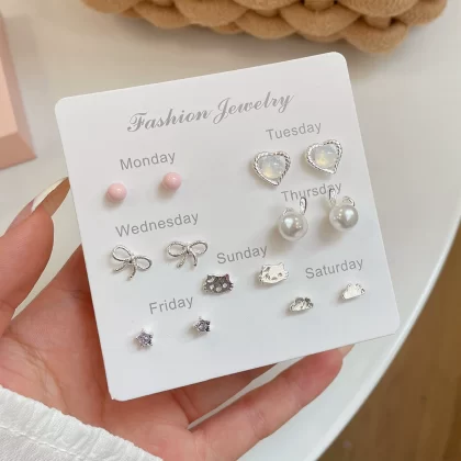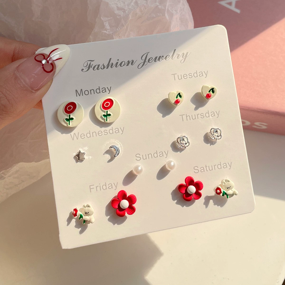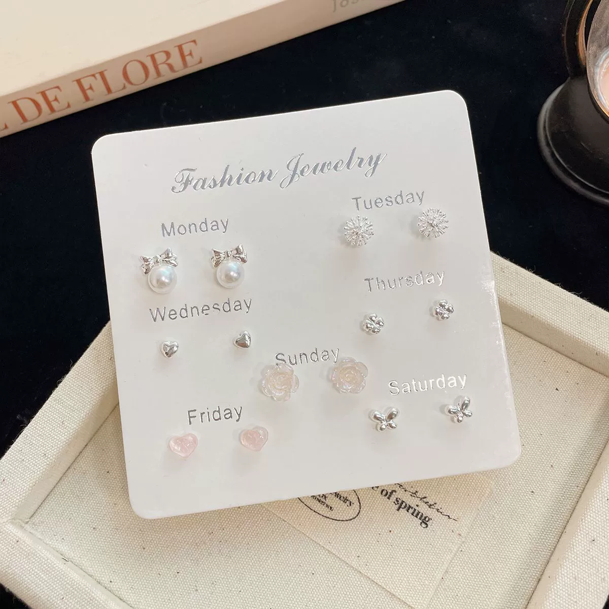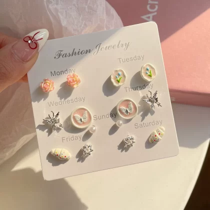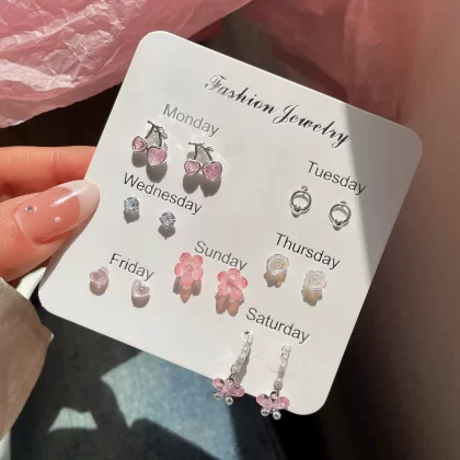 | nameOriginal | Daily Cute One Week Female Small Pink Student Earrings |