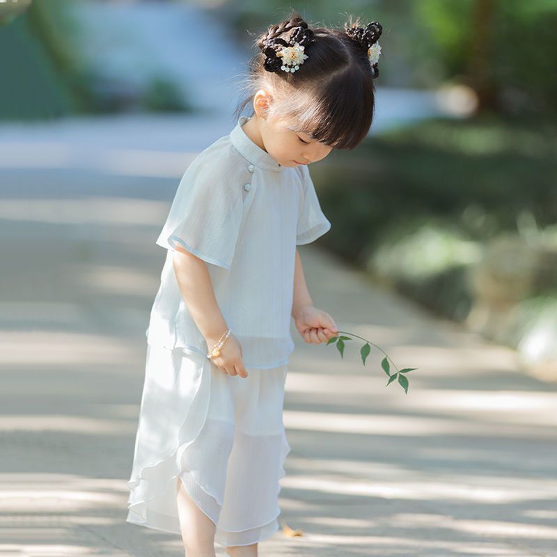 Daily Hanfu Children's Women's Summer Thin Chinese Style Tang Suit Female Baby's Antique Summer Suit Girl's Short Sleeve Republic of China Style