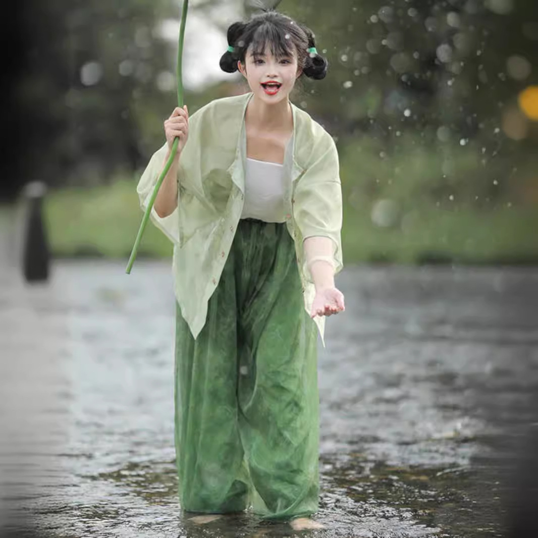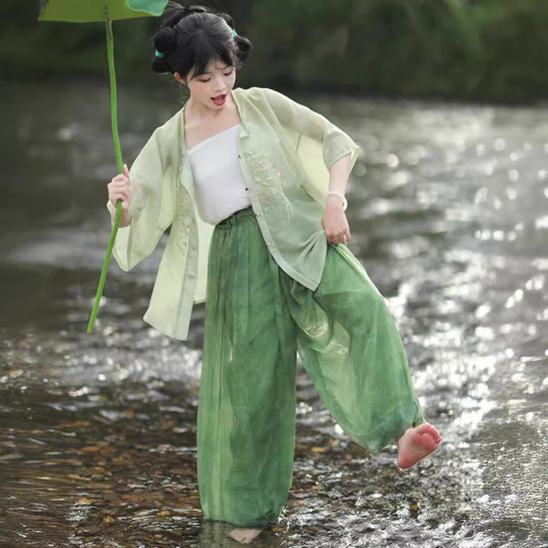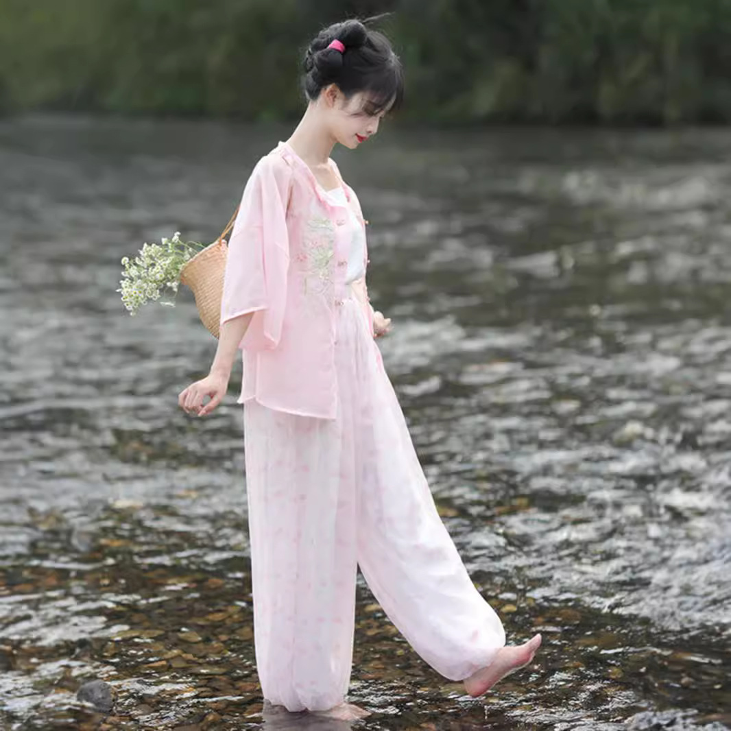 | nameOriginal | Daily Hanfu Women's [Coco Nai Nai] Lantern Pants Round Neck Shirt Embroidered Breathable Sling Fresh Daily suit in Summer |