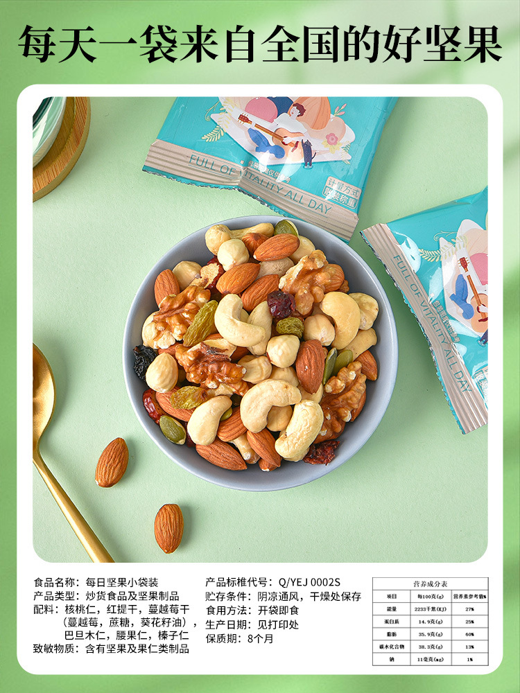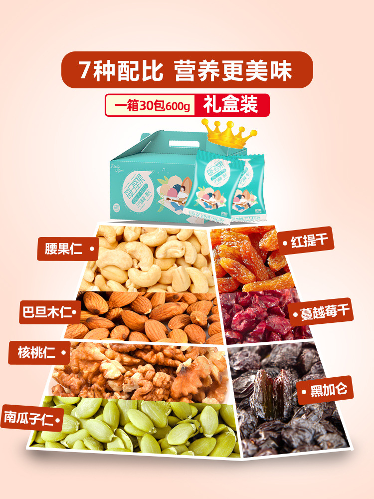 | nameOriginal | Daily nut 30 small package mixed nut dried fruit gift box snack gift bag pregnant women and children full box gift |