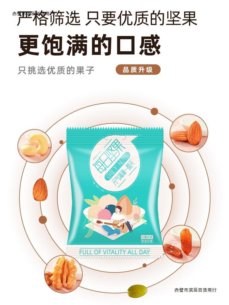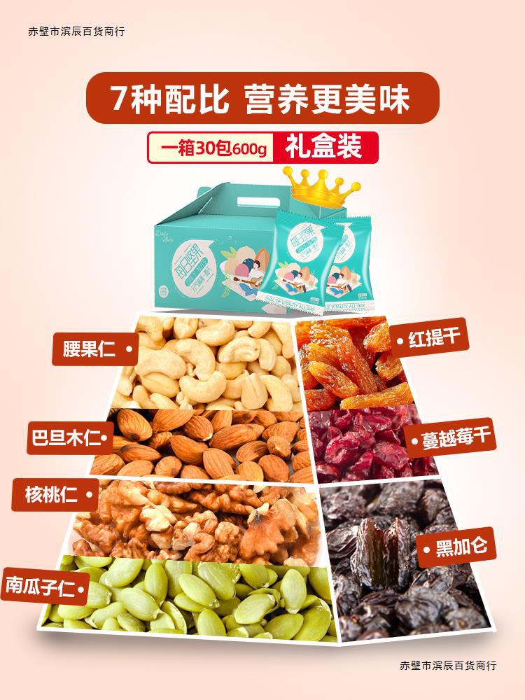 | nameOriginal | Daily nut mixed nut gift box 30 small bags leisure snacks pregnant women and children dried fruit gift bag full box gift |