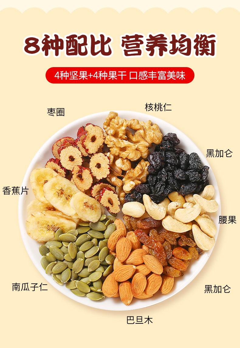| nameOriginal | Daily nuts mixed nuts pregnant women and children dried fruit gift bag office leisure nutrition snacks small package |