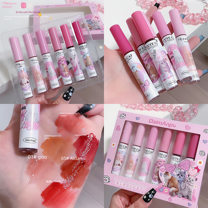 | nameOriginal | Daimanpu cute cat funny mirror lip glaze suit Shantou makeup clear lip glaze summer student cheap lipstick |