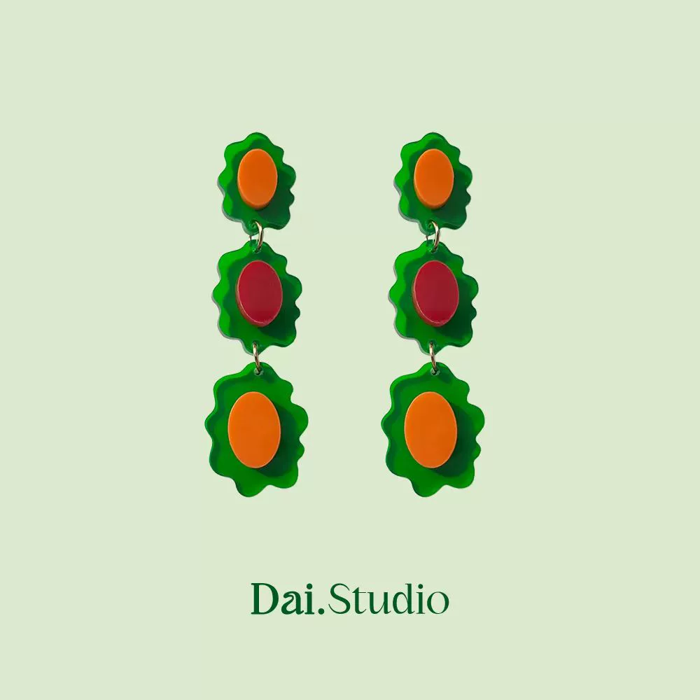| nameOriginal | DaiStudio "Christmas Garden" original niche design earrings for women, green exaggerated earrings |