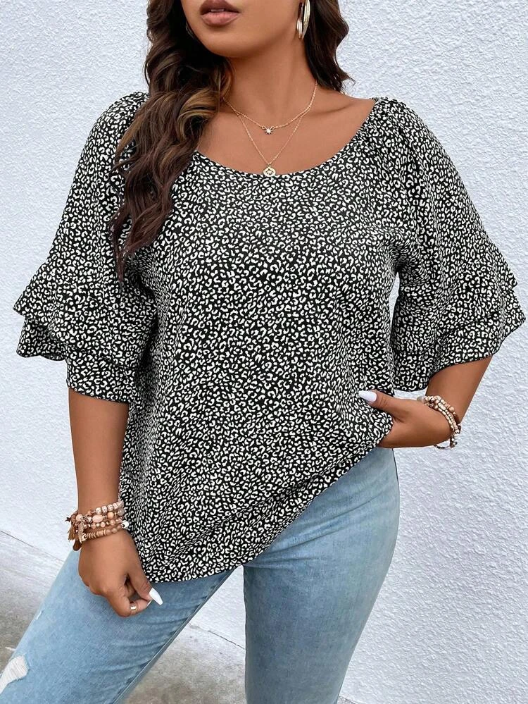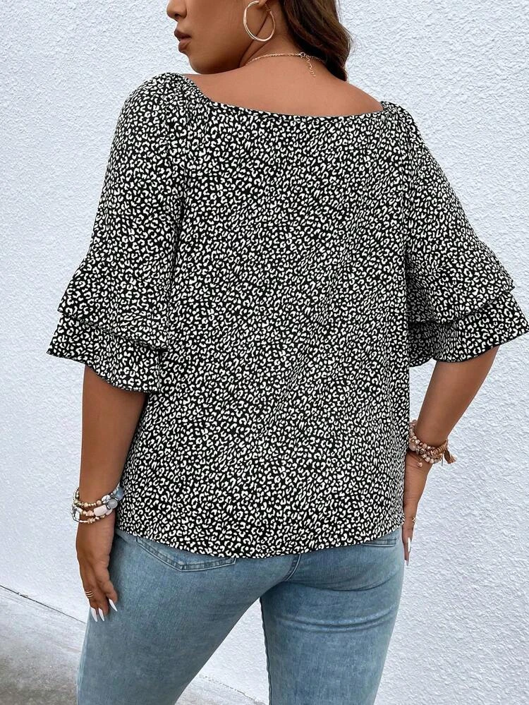 | nameOriginal | SHEIN Frenchy Plus Dalmatian Print Flounce Sleeve Blouse  |