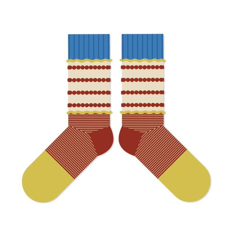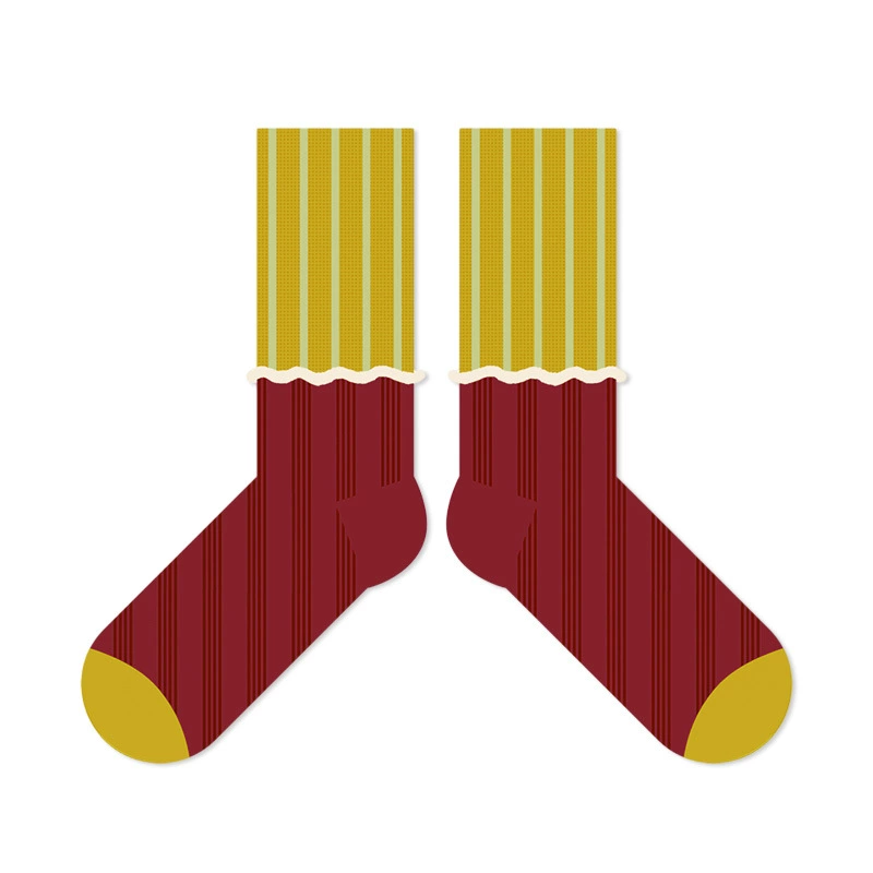 | nameOriginal | DAMAHOOV dopamine socks women's autumn and winter new fungus-edged cotton socks simple striped mid-calf socks candy color |