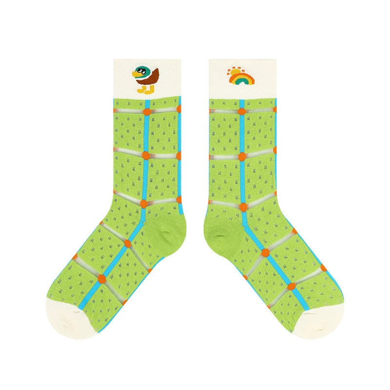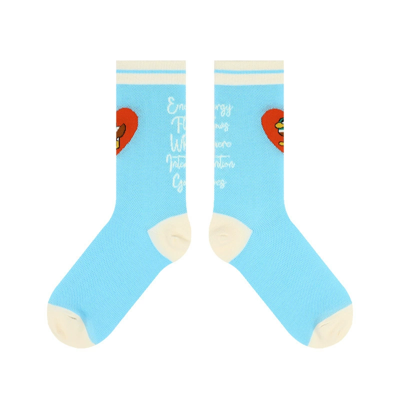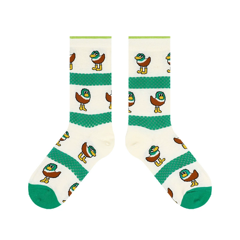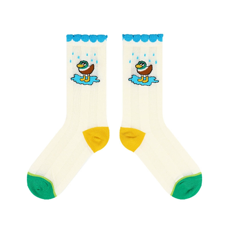DAMAHOOV original cartoon duck illustration medium tube socks summer ultra-thin crystal socks ins Korean version hollow socks