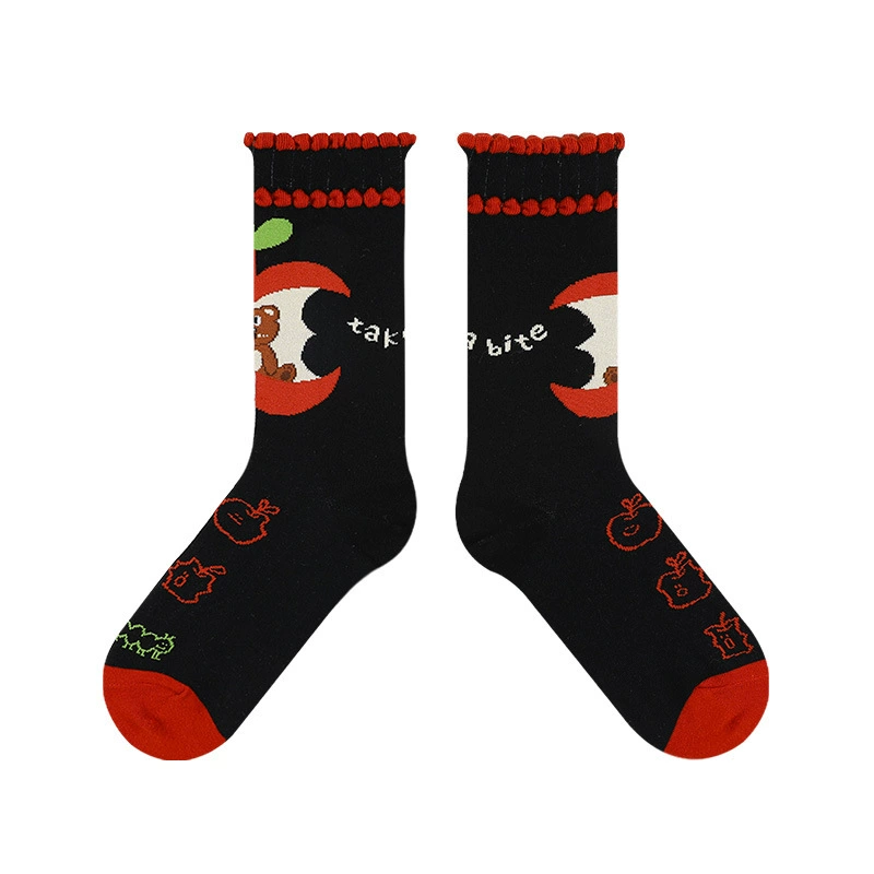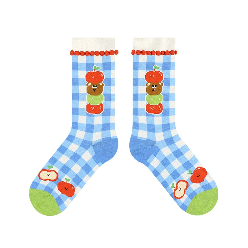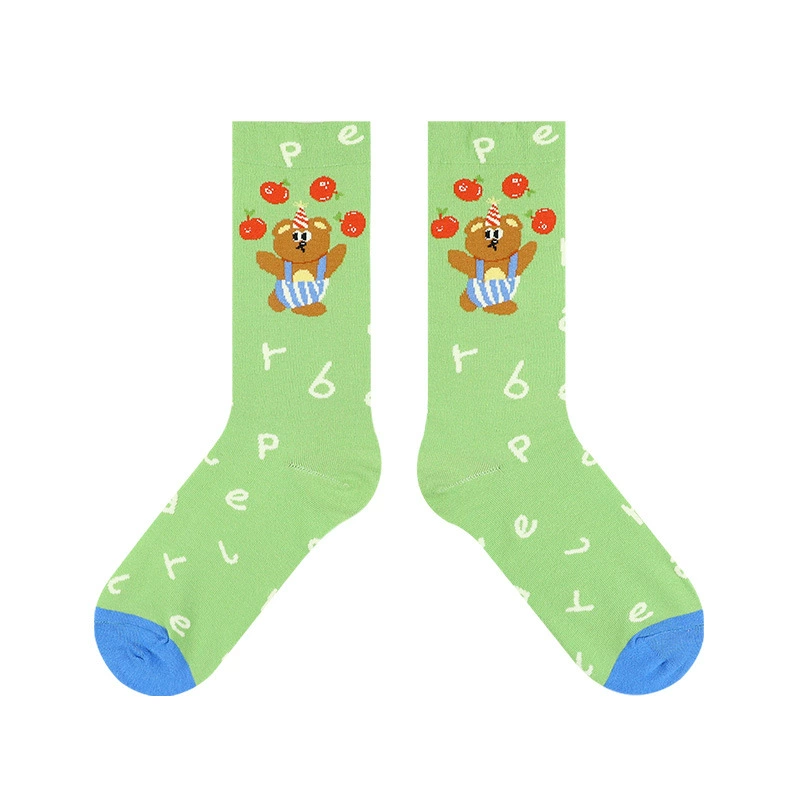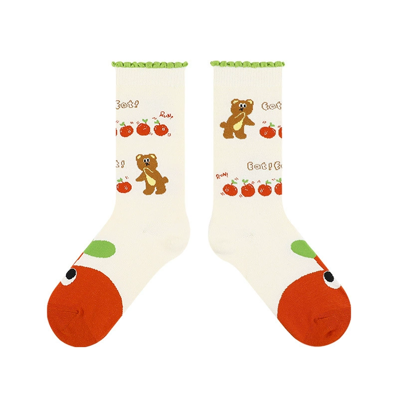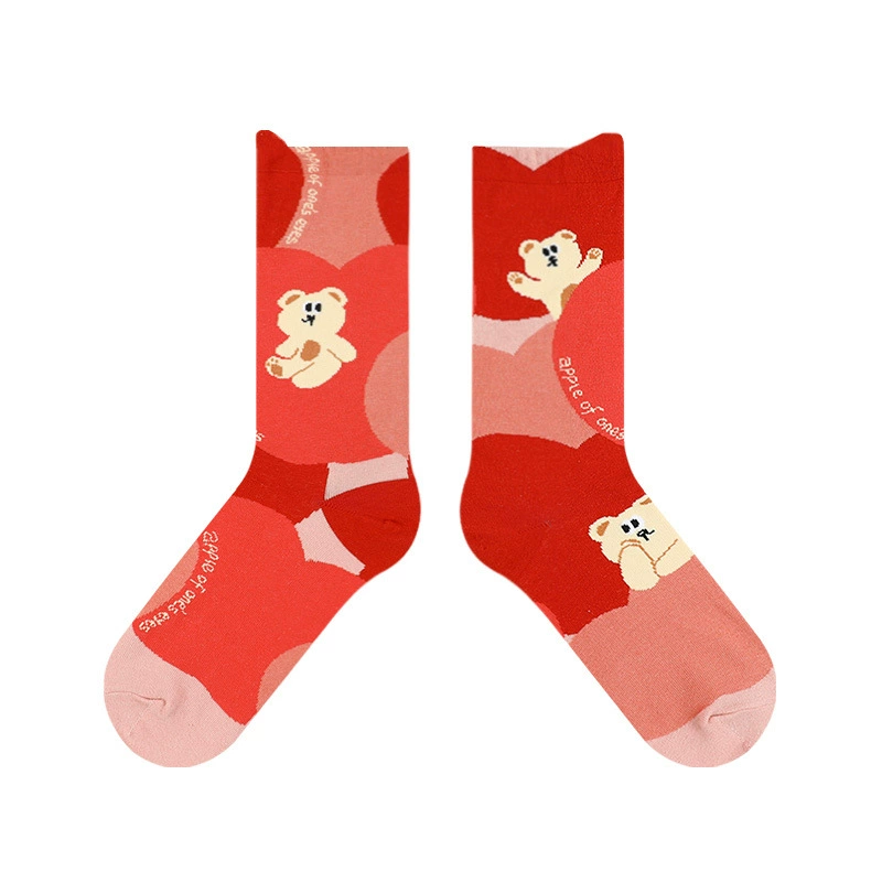 DAMAHOOV original cartoon socks for women spring and summer new cute bear illustration mid-tube socks ins Korean version trendy socks