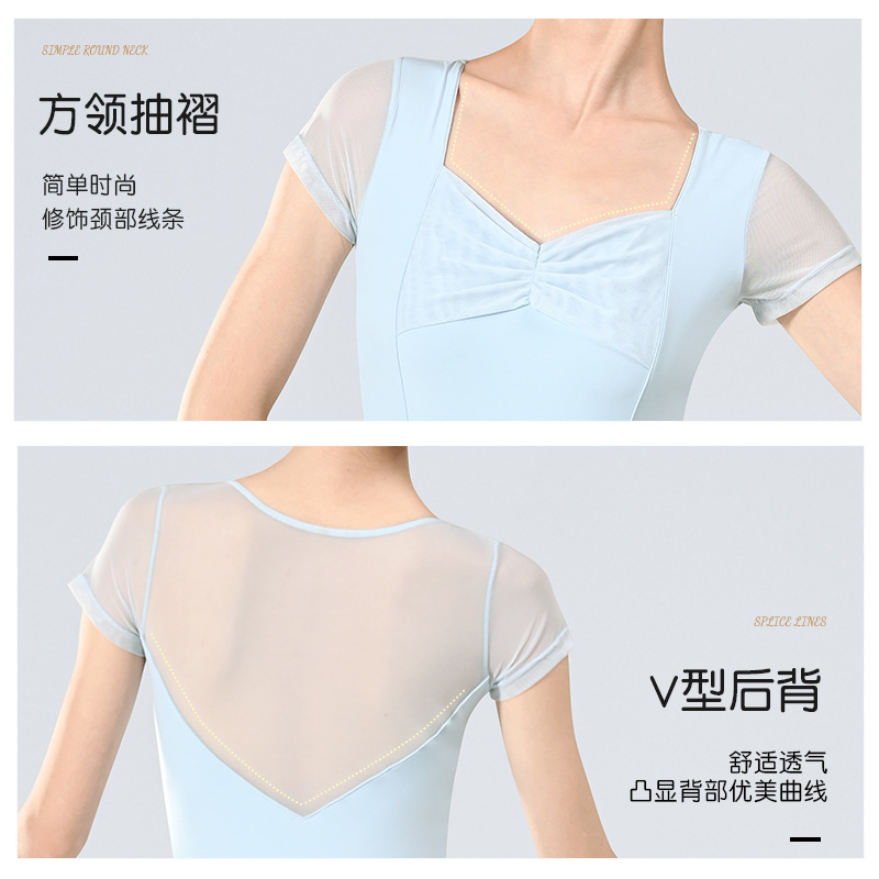 | nameOriginal | Dance clothes practice clothes women's summer short-sleeved nylon pleated mesh jumpsuit ballet basic training dancing body clothes |