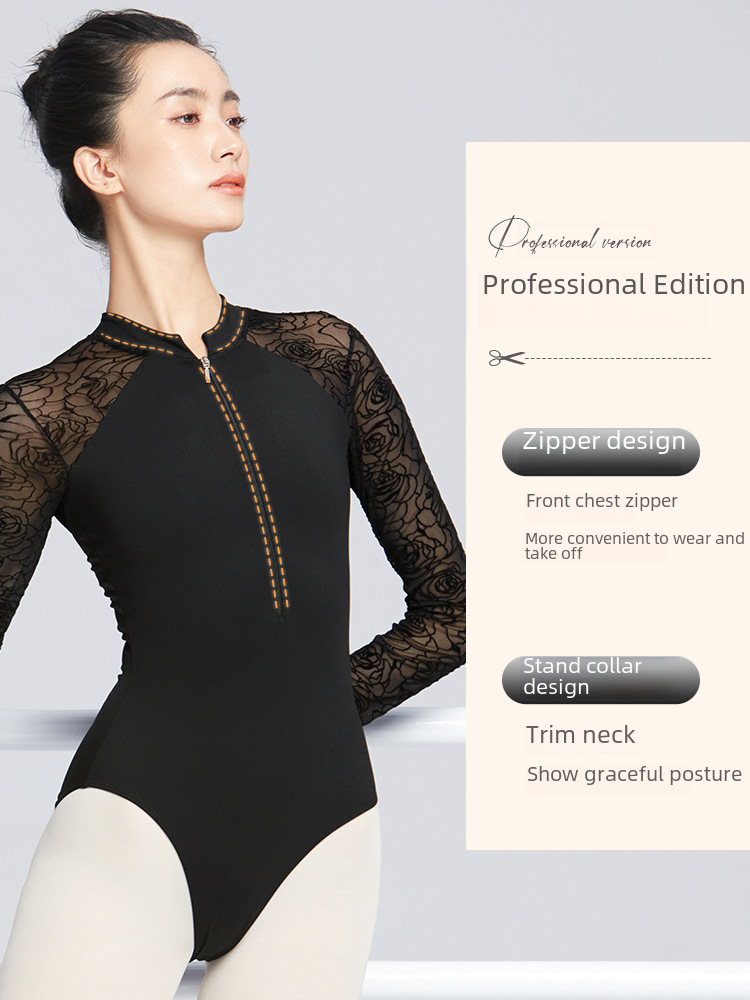 Dance Clothing Gymnastics Clothing Girls Adult Fall/Winter Flocking Collar Ballet Conjoined Body Clothing Test Level Practice Clothing