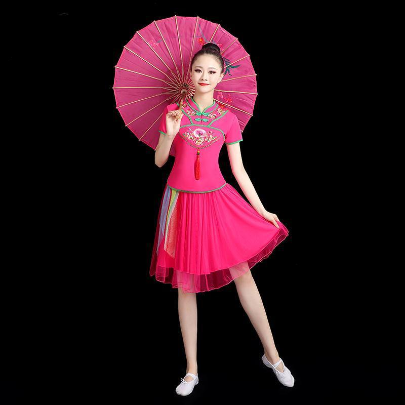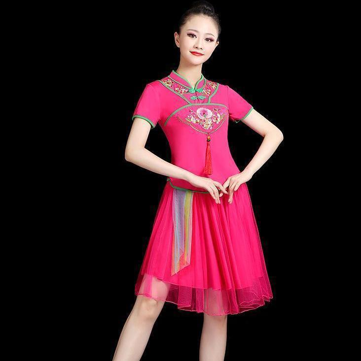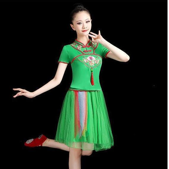 Dancing Clothes Women’s Suit Ethnic Style Short Skirt New Large Size Square Dance Clothing Summer Dress Dance Competition Performance Clothing