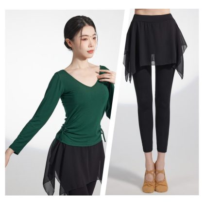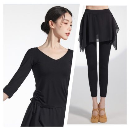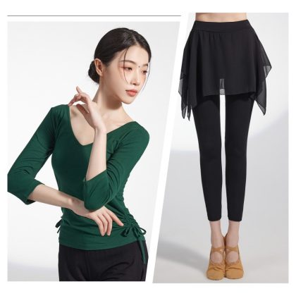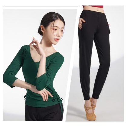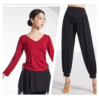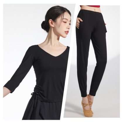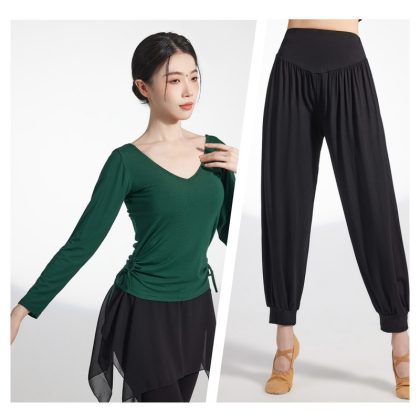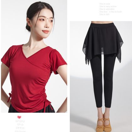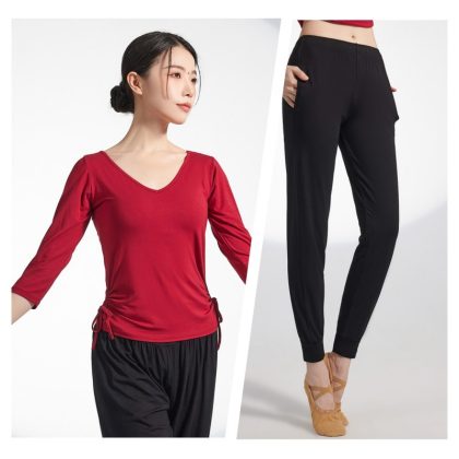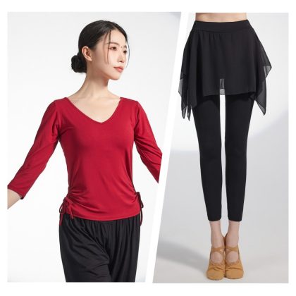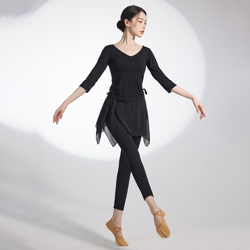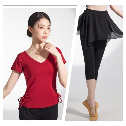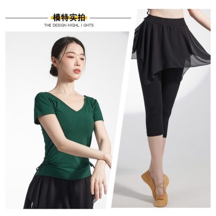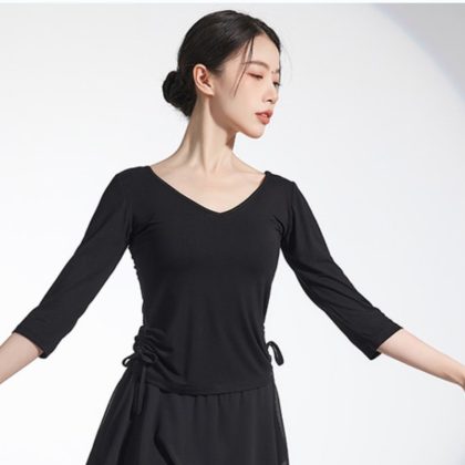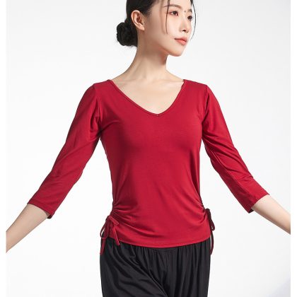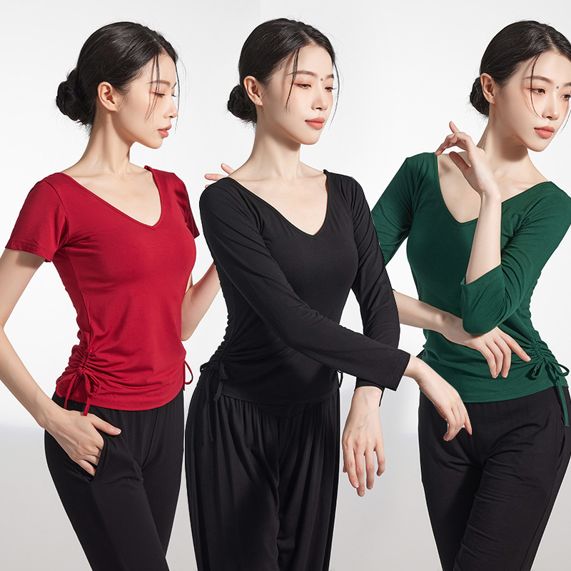 Dancing Suit Top Women’s V-neck Mid-sleeve Slim-fit Slimming Modal Body Classical Modern Dance Practice Suit Dancing Clothes