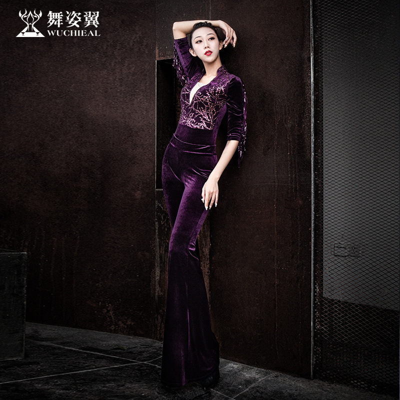 | nameOriginal | Dancing Wing Etiquette Body Suit Women's 2020 Summer Velvet Dance Show Modern Dance Suit Training Set XT162 |