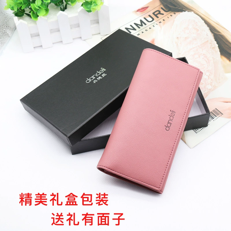 Dandeli long wallet women’s hand mobile phone bag soft leather student wallet thin 2021 new buckle simple wallet