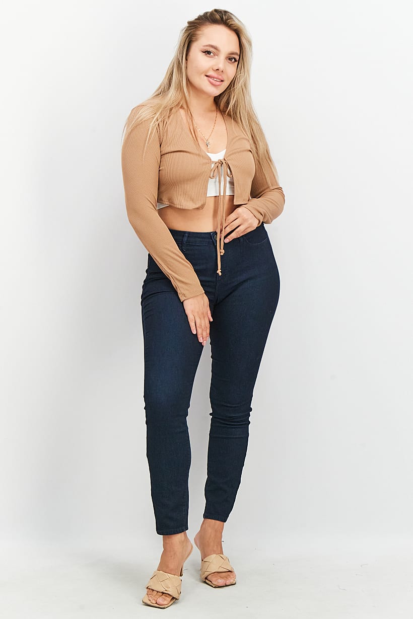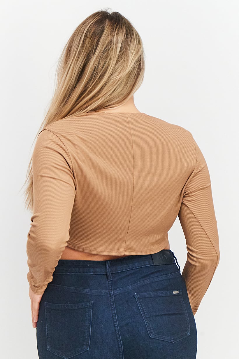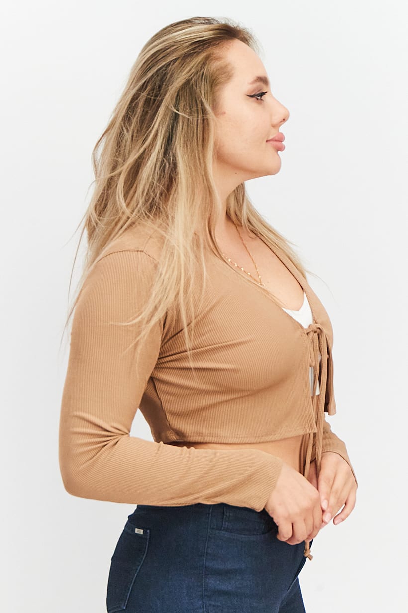 | nameOriginal | Women Tie Front Long Sleeve Top, Dark Beige |