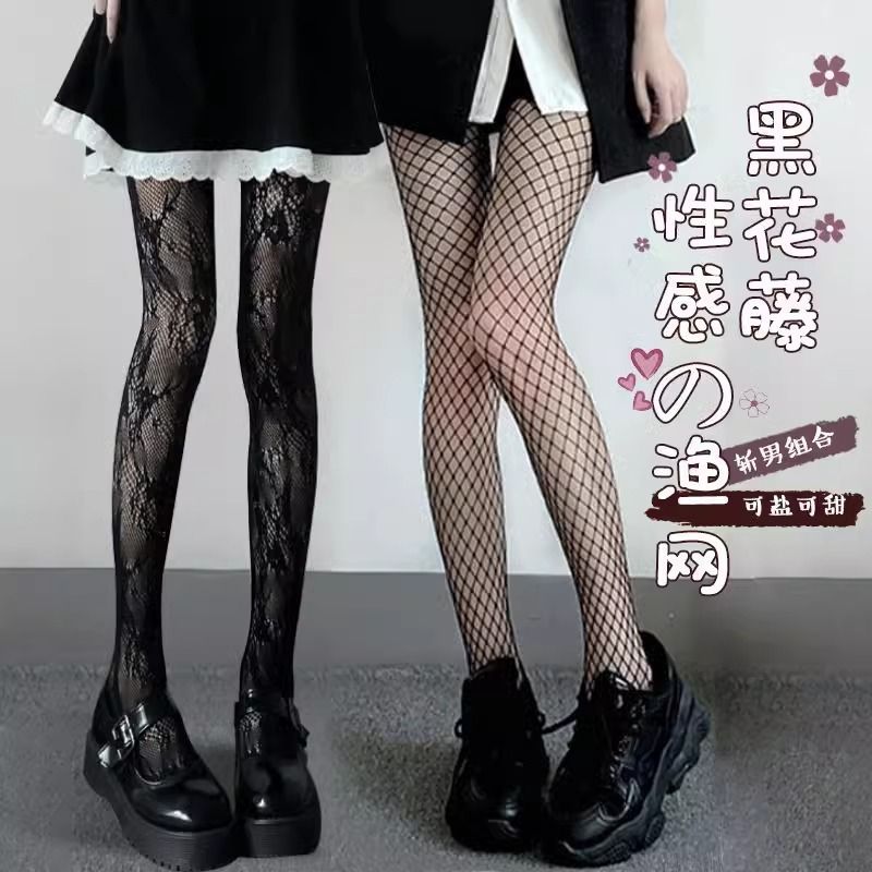 | nameOriginal | Dark black fishnet socks jk black silk sexy hot girl Flower Vine stockings White pantyhose women's ultra-thin anti-snagging silk transparent meat |