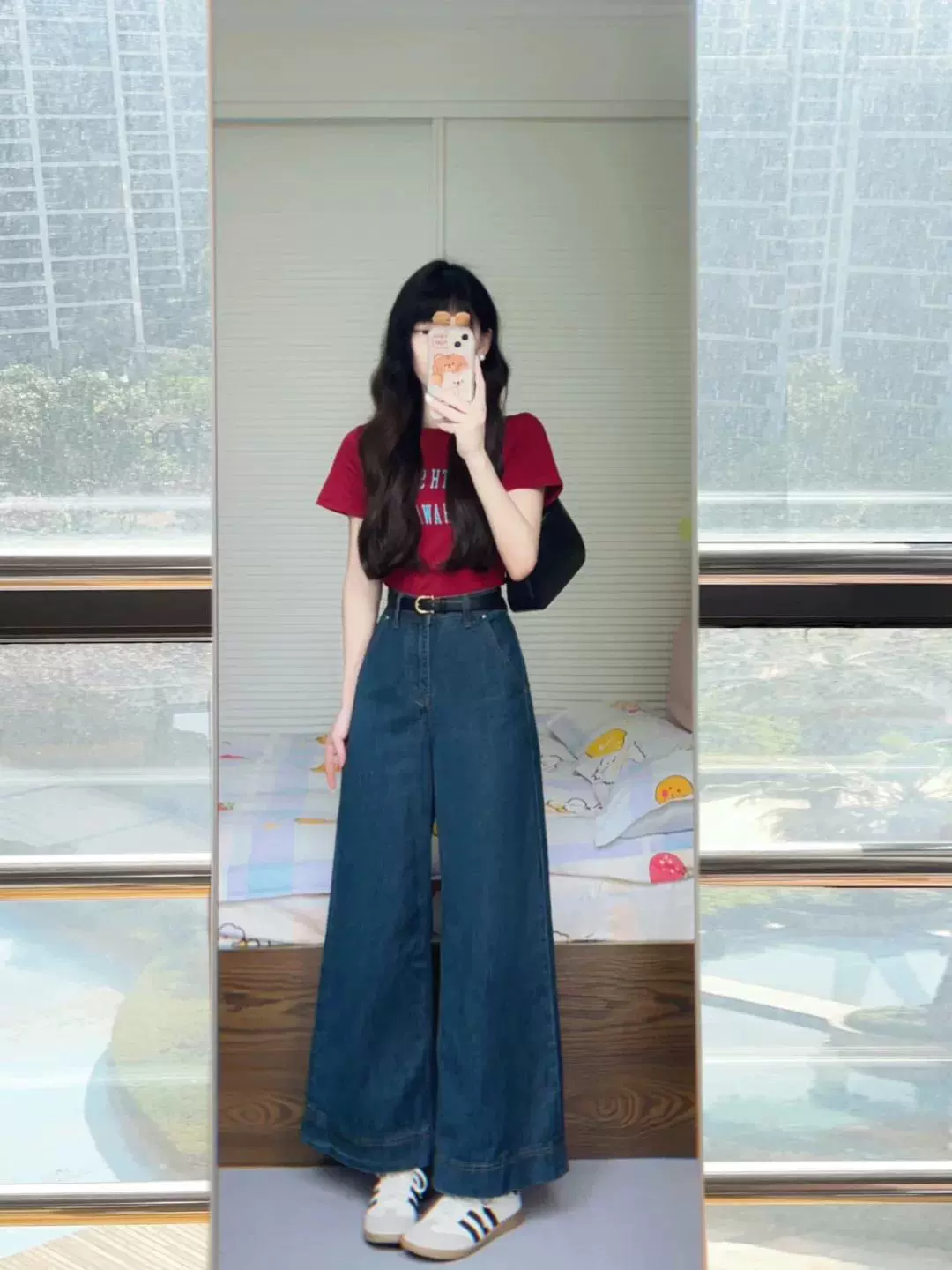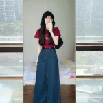 Dark blue high-waisted slimming straight jeans