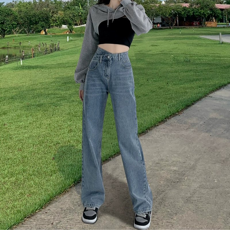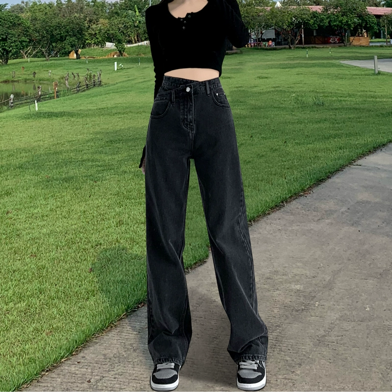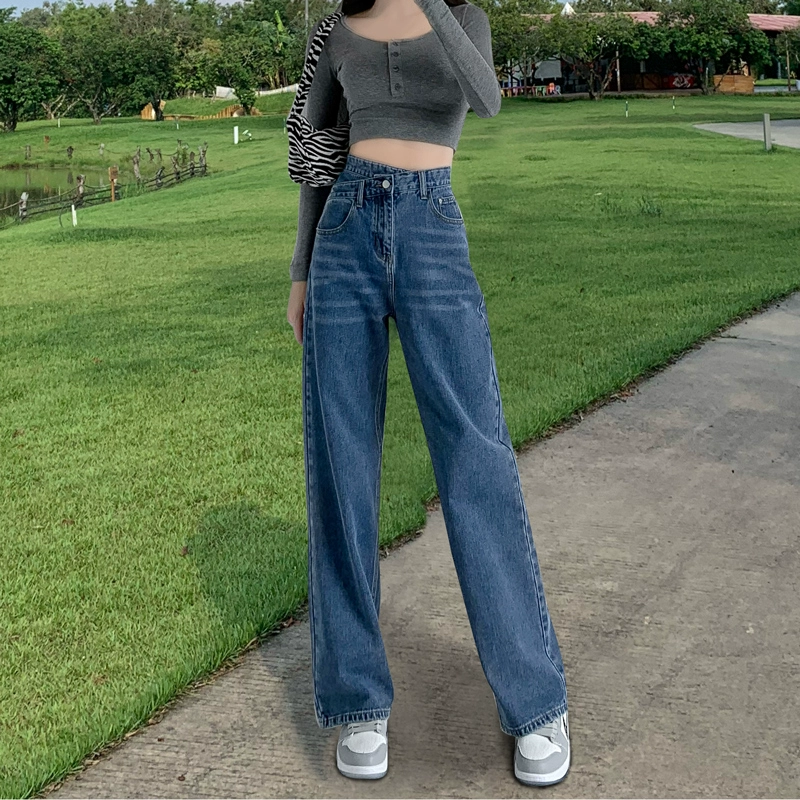 | nameOriginal | Dark blue high-waisted spring and autumn loose retro jeans |