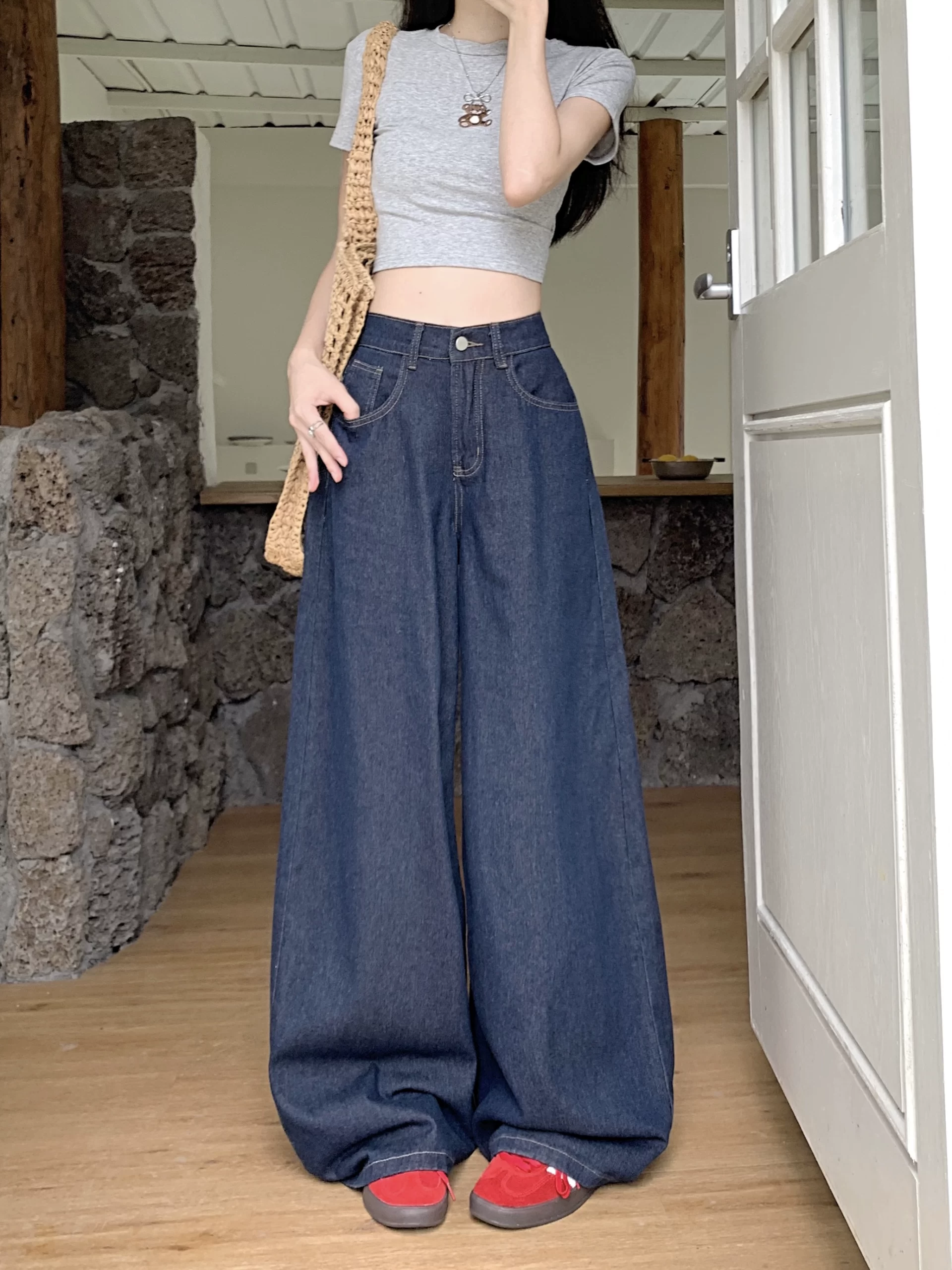 | nameOriginal | Dark blue retro high-waisted versatile straight jeans |