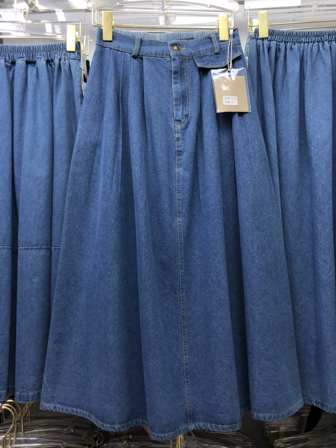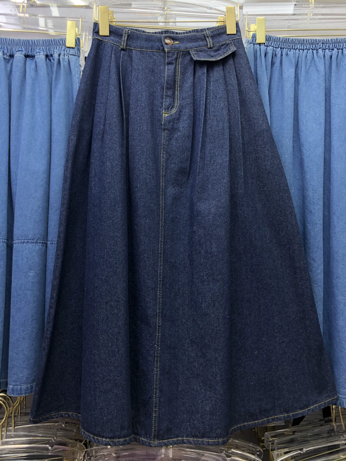 | nameOriginal | Dark blue retro mid-length plus size denim skirt |
