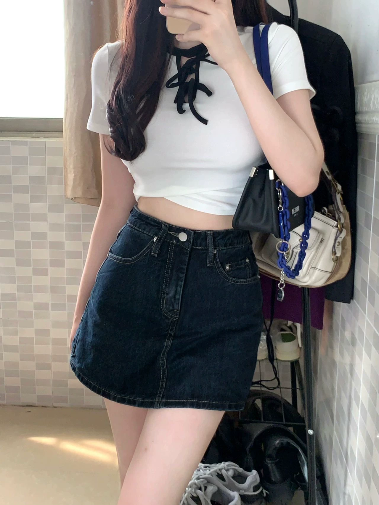 | nameOriginal | Dark blue slimming and versatile crotch-covering denim skirt for fat girls |