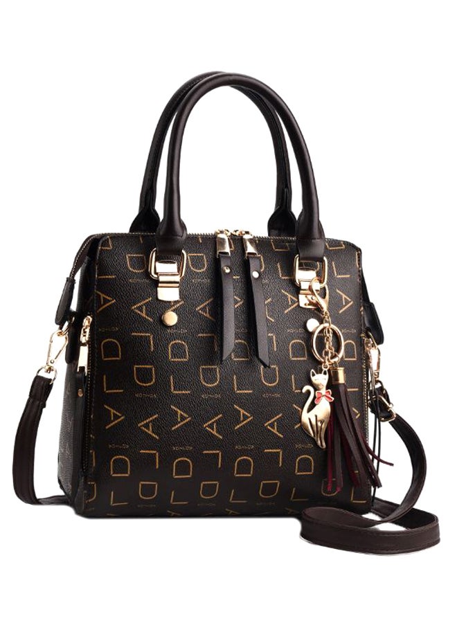 Dark Brown/Black/Gold Crossbody Bag with Contrast Letter Pattern.
