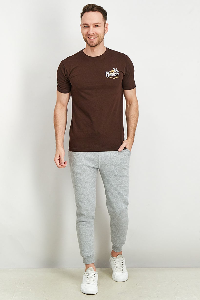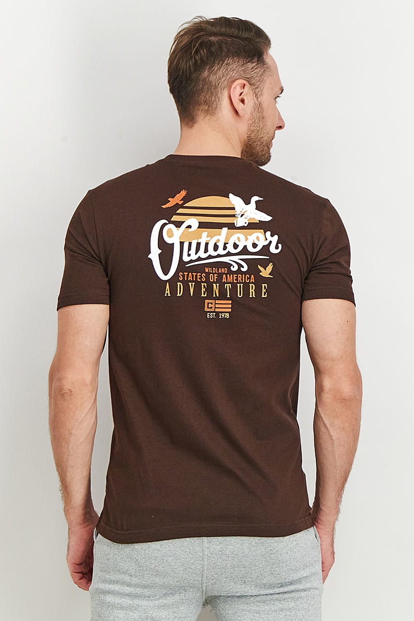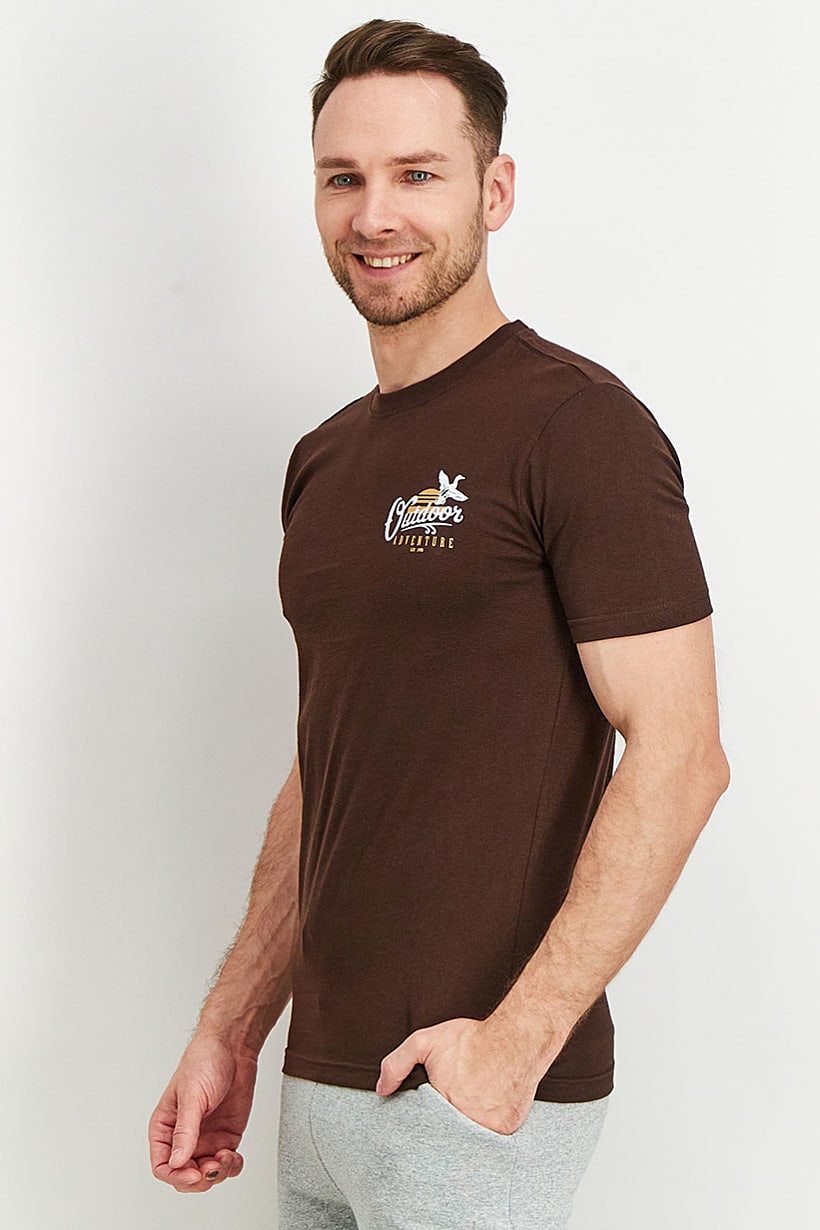 | nameOriginal | Men Crew Neck Short Sleeve Graphic Print T-Shirt, Dark Brown |