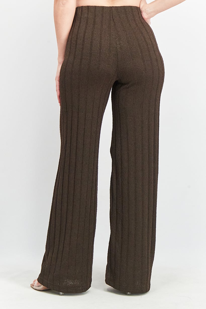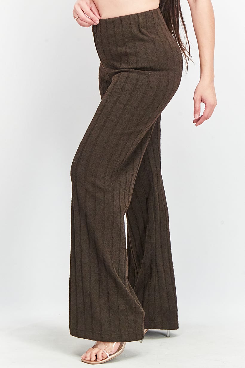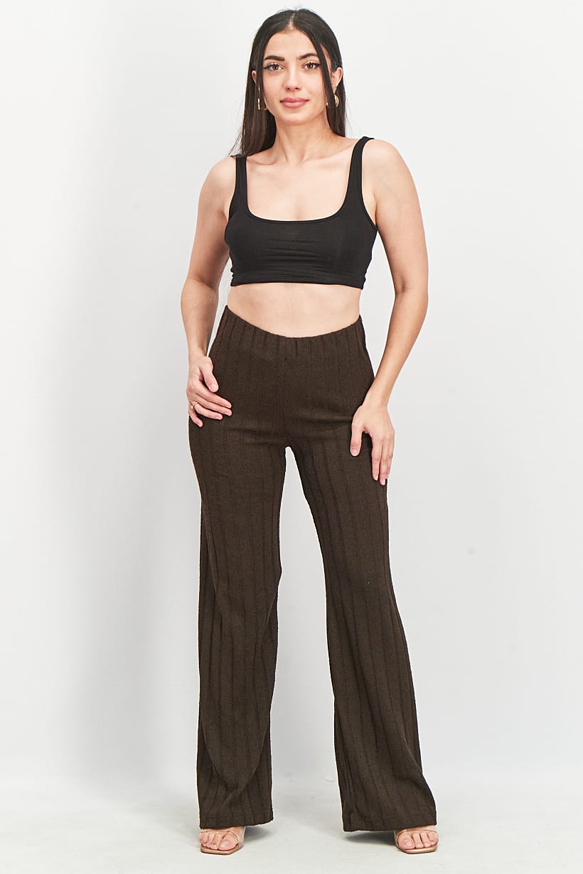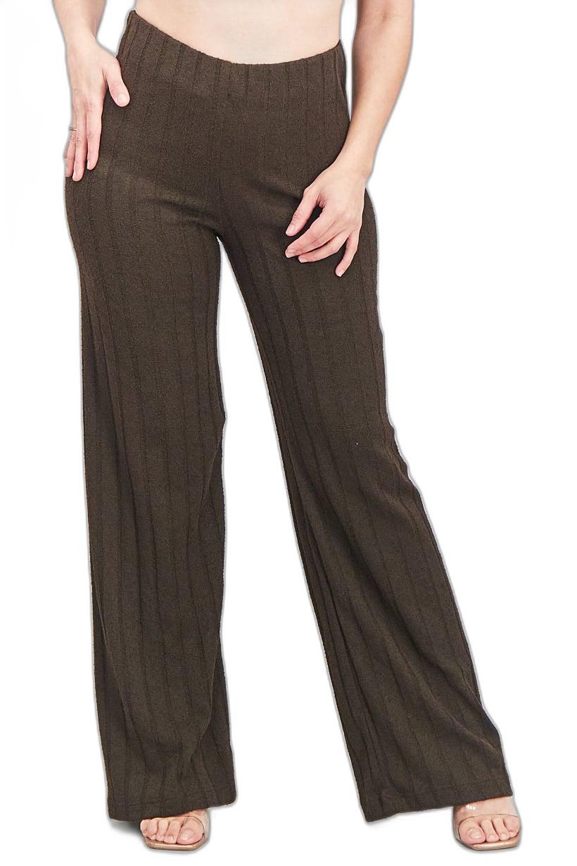Dark Brown Textured Pants for Women with Regular Fit.