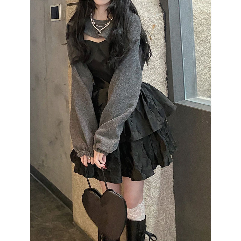 | nameOriginal | Dark Color High Cold Sling dress Shirt Cover Two-piece Set Spring and Autumn Niche Design Black Hot Girl Fashionable suit Women |