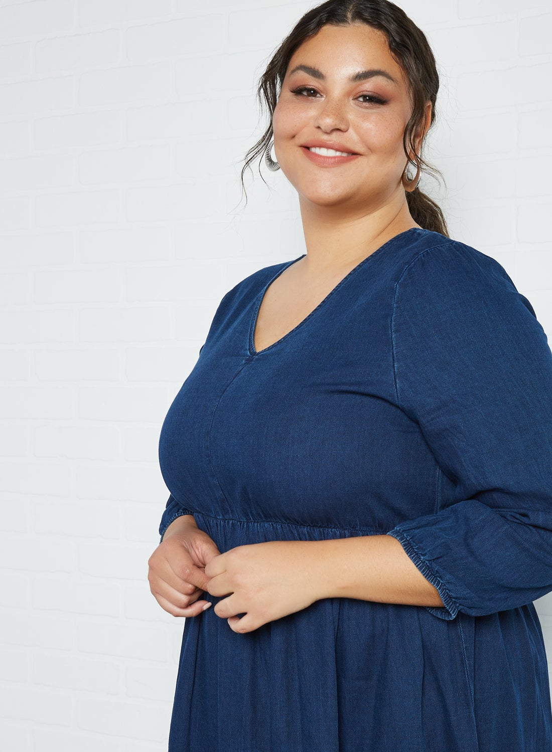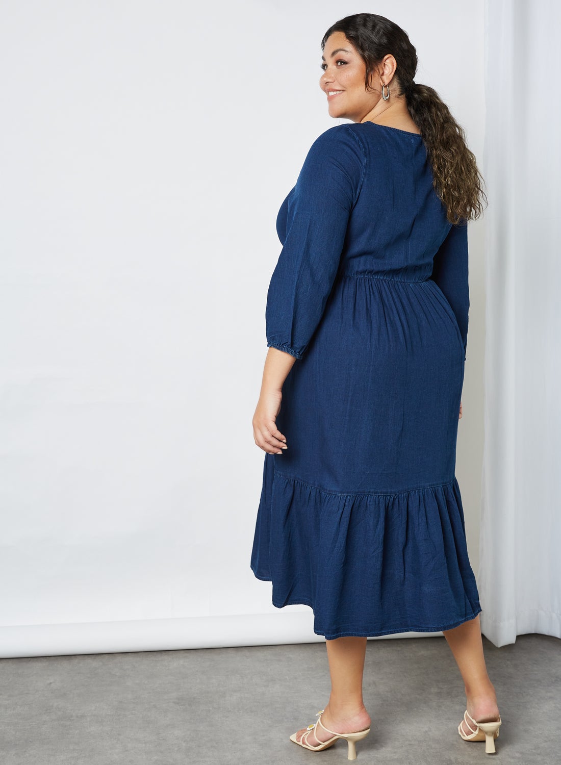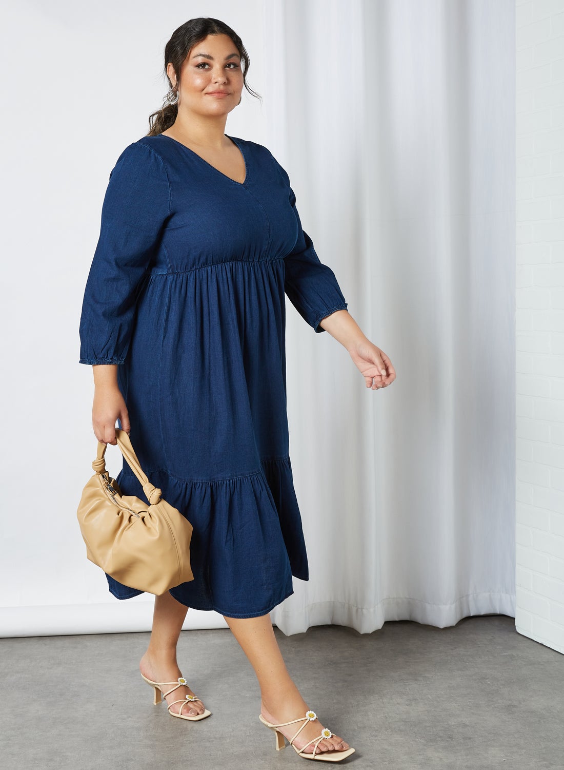 | nameOriginal | Plus Size Tiered Denim Dress Dark Denim |
