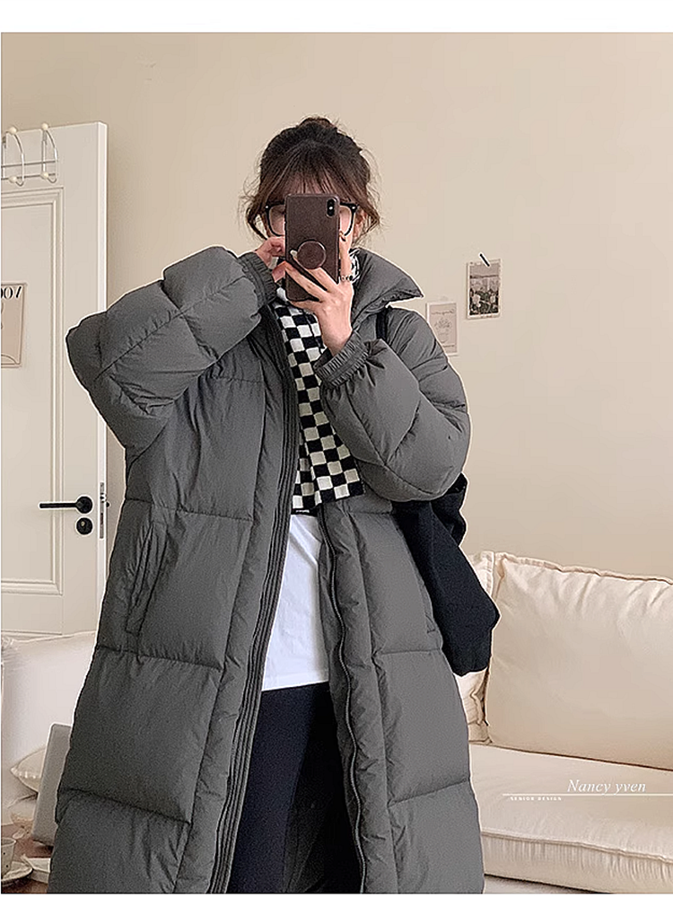 | nameOriginal | dark gray Quilt Down Jacket Women's 2023 New Thickened White Duck Down Super Long Knee-length Loose Korean Style Jacket |