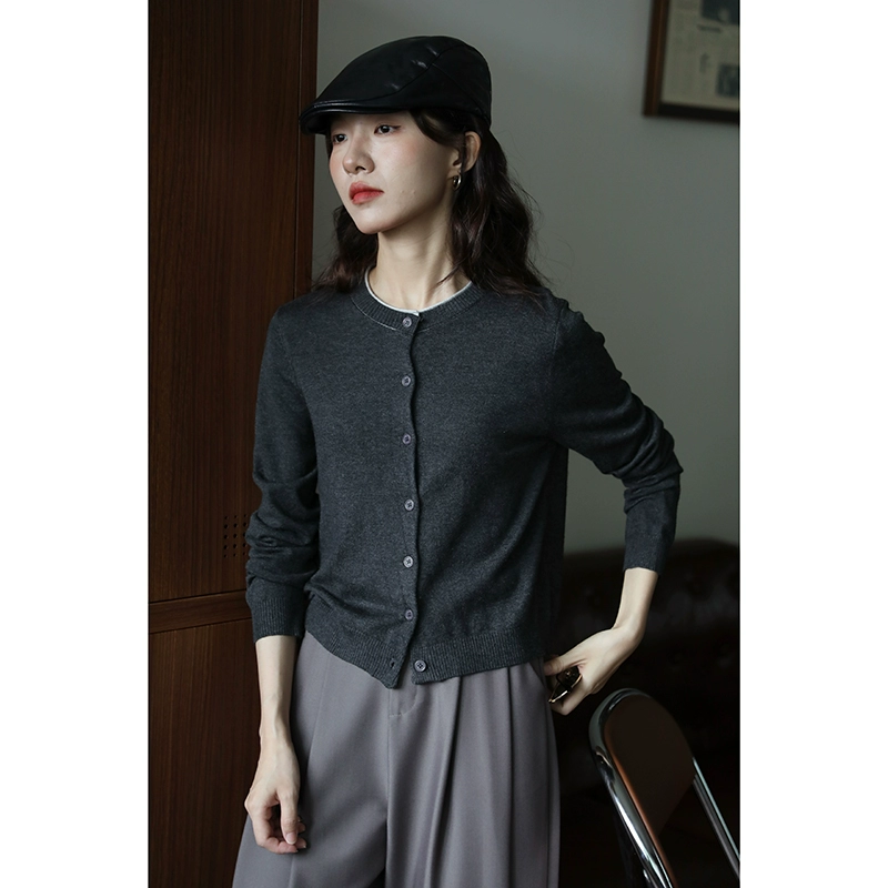 | nameOriginal | Dark gray round neck knitted sweater jacket retro cardigan |