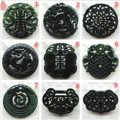 | nameOriginal | Dark green jade double-sided hollow pendants natural |