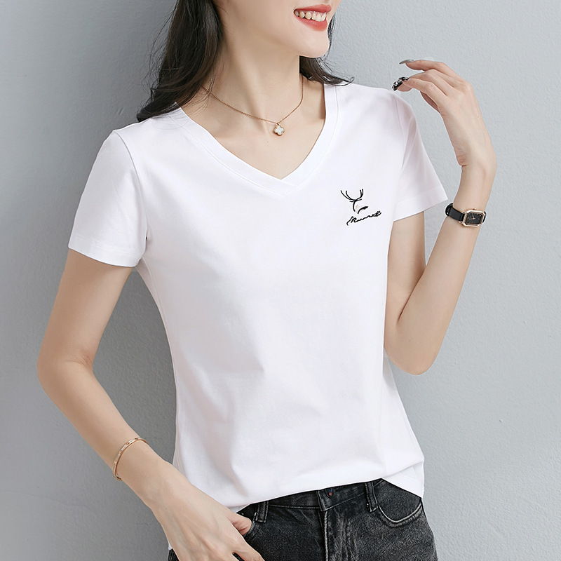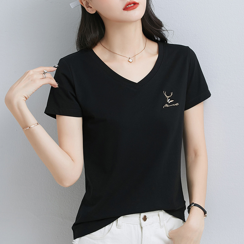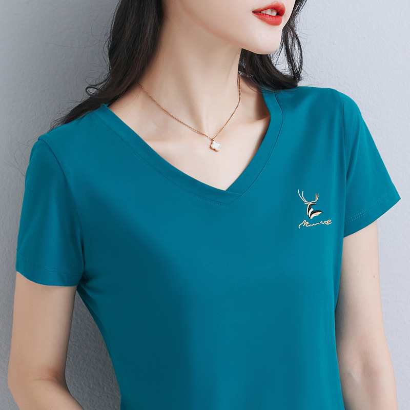 | nameOriginal | Dark Green V-Neck Short-Sleeved T-Shirt Women's Summer 2024 New Pure Cotton Thin Half-Sleeved Slim-Fit Women's Top T-Shirt |