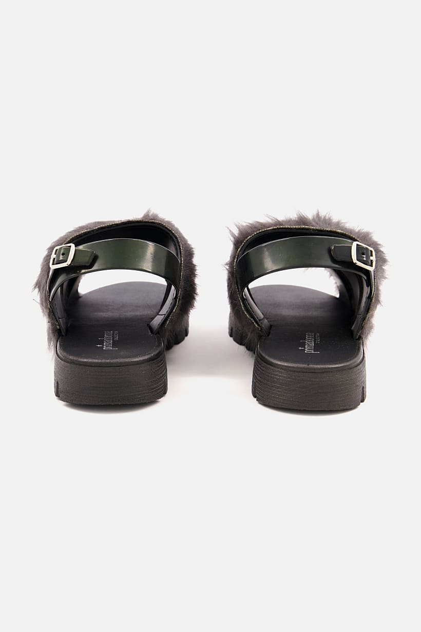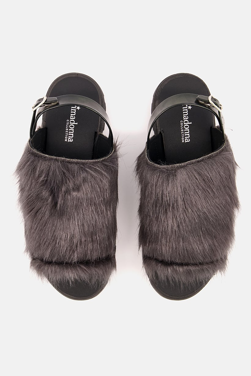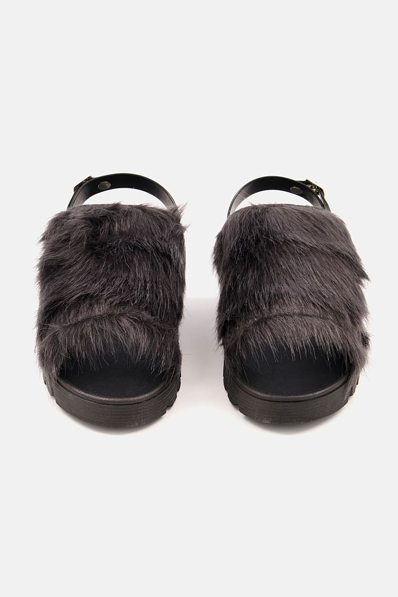 | sub_Categories | Shoes, Sandals & Slippers, women faux fur platform sandals dark grey black |