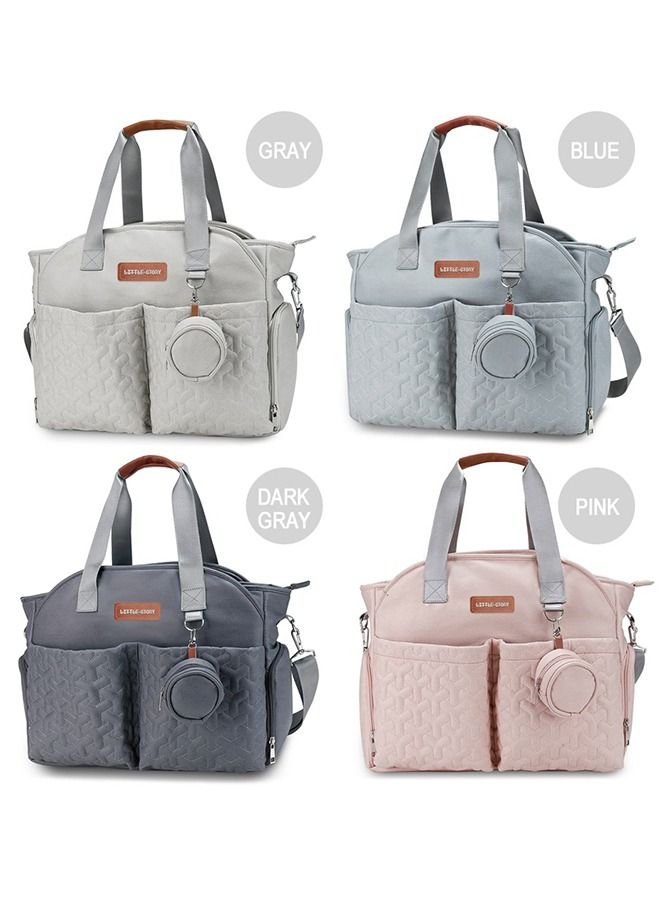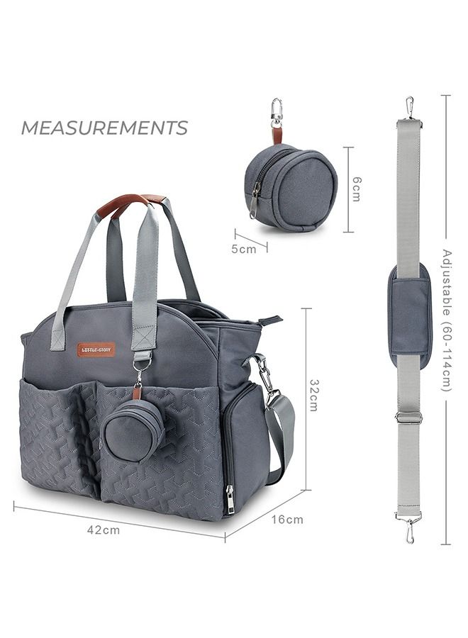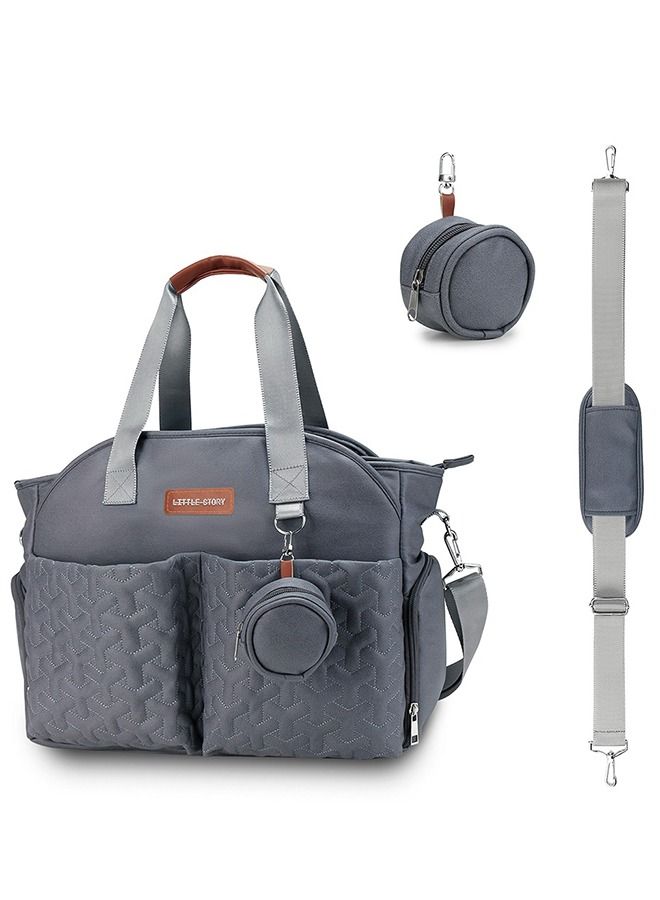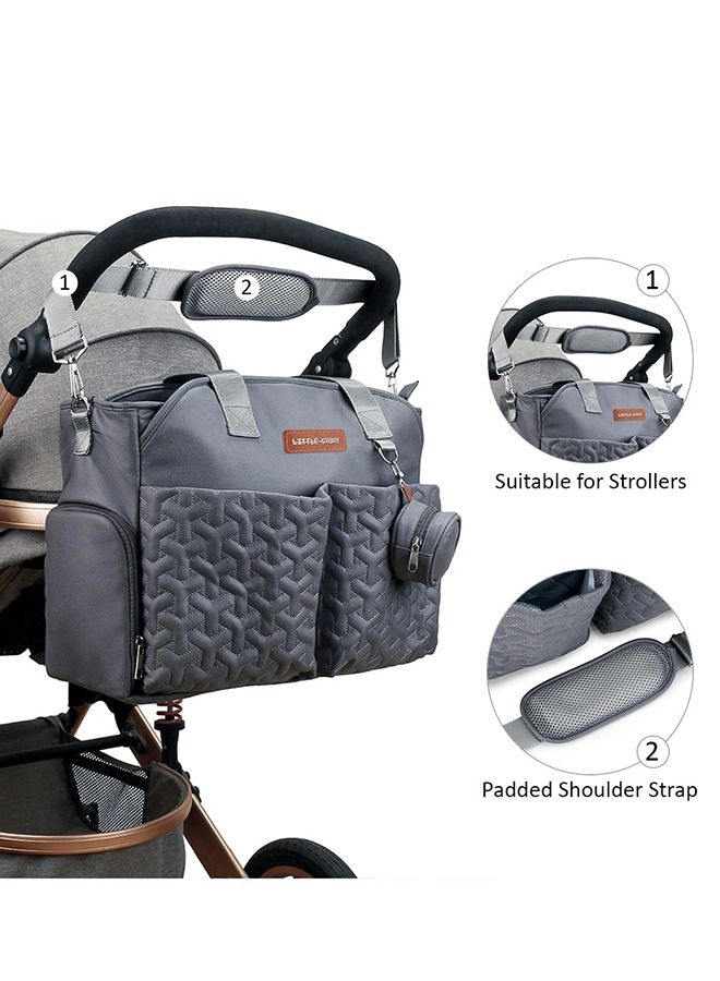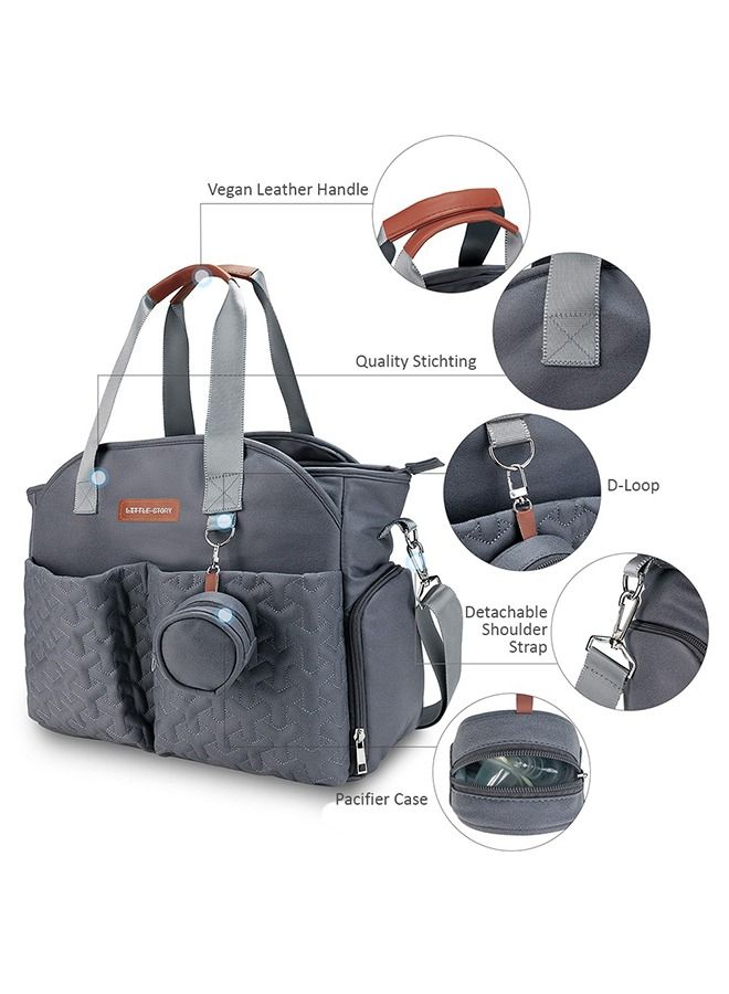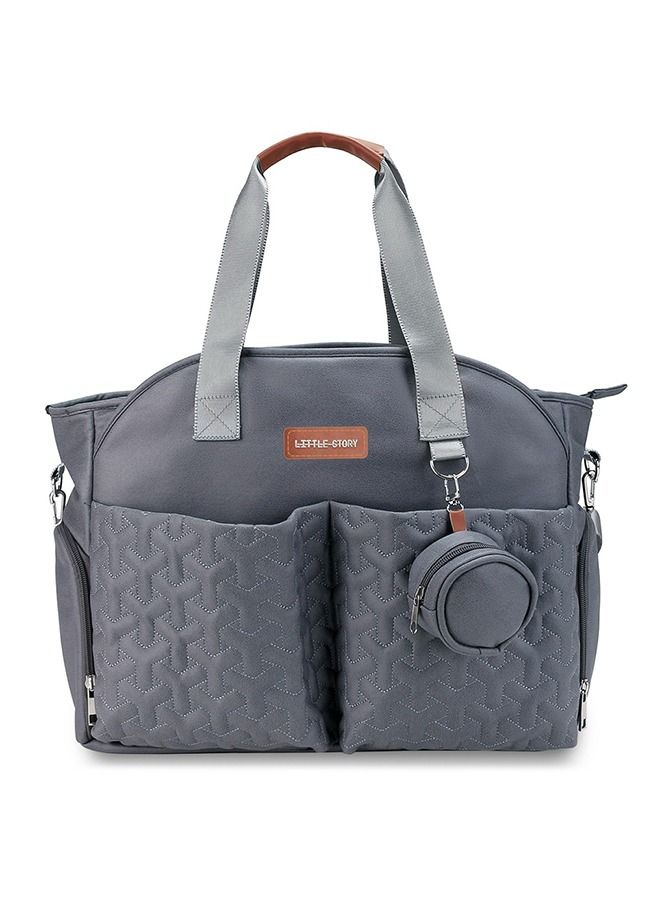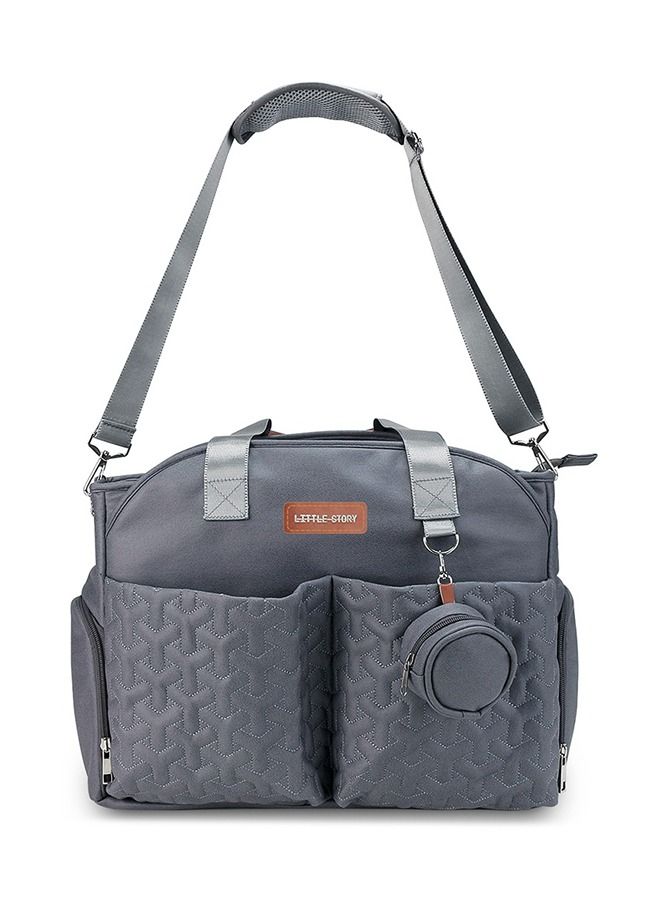 Quilted Diaper Bag With Pacifier Pouch-Dark Grey