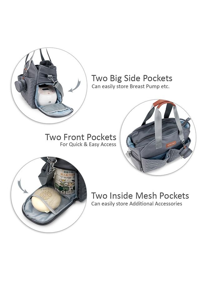 Dark Grey Diaper Bag with Pacifier Pouch and Quilting.