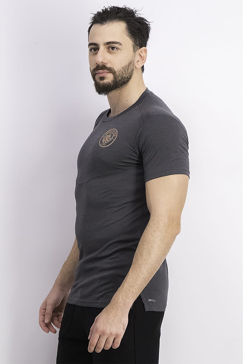 Care : Machine washable, Fit : Athletic Fit, Size shown : US, Sleeve Length : Short Sleeve, Thickness : Light, Type of Neckline & Collar : Crew neckline , Type of Sport : Training, Fabrics : 100% Polyester, Occasion : Sport, Pattern & Print : Brand Logo, Sportswear Type : Jersey, Color Family : Grey,