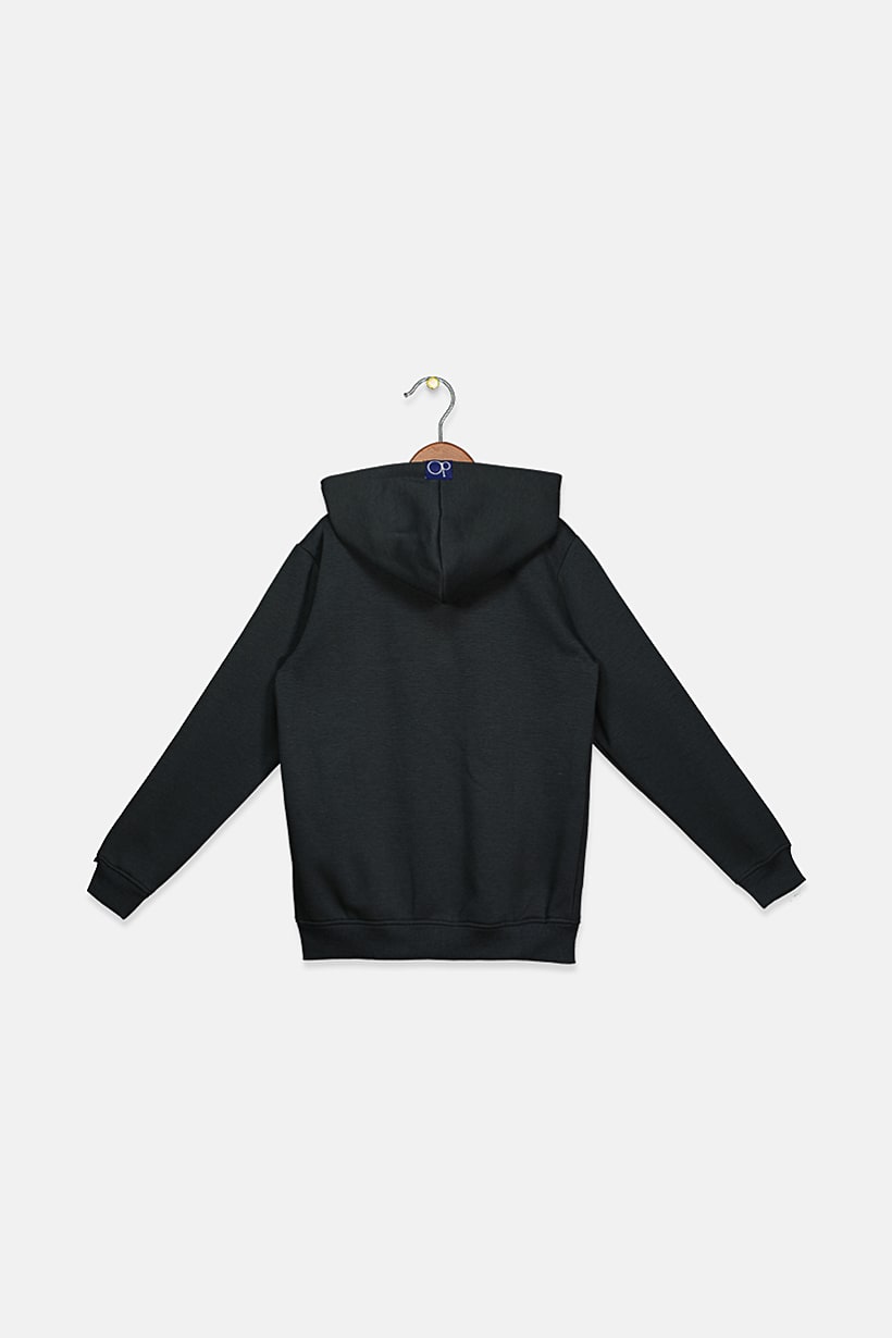 Dark Grey Hoodie with Embroidered Long Sleeves for Boys.