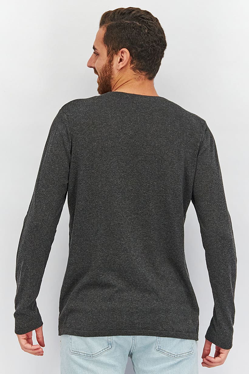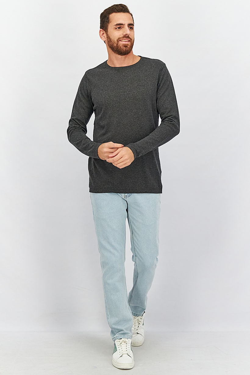 Dark Grey Men’s Heathered Crew Neck Sweatshirt with Long Sleeves.