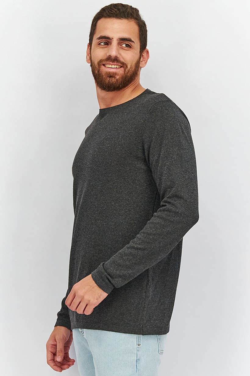 Men Crew Neck Long Sleeve Heather Sweatshirt, Dark Grey