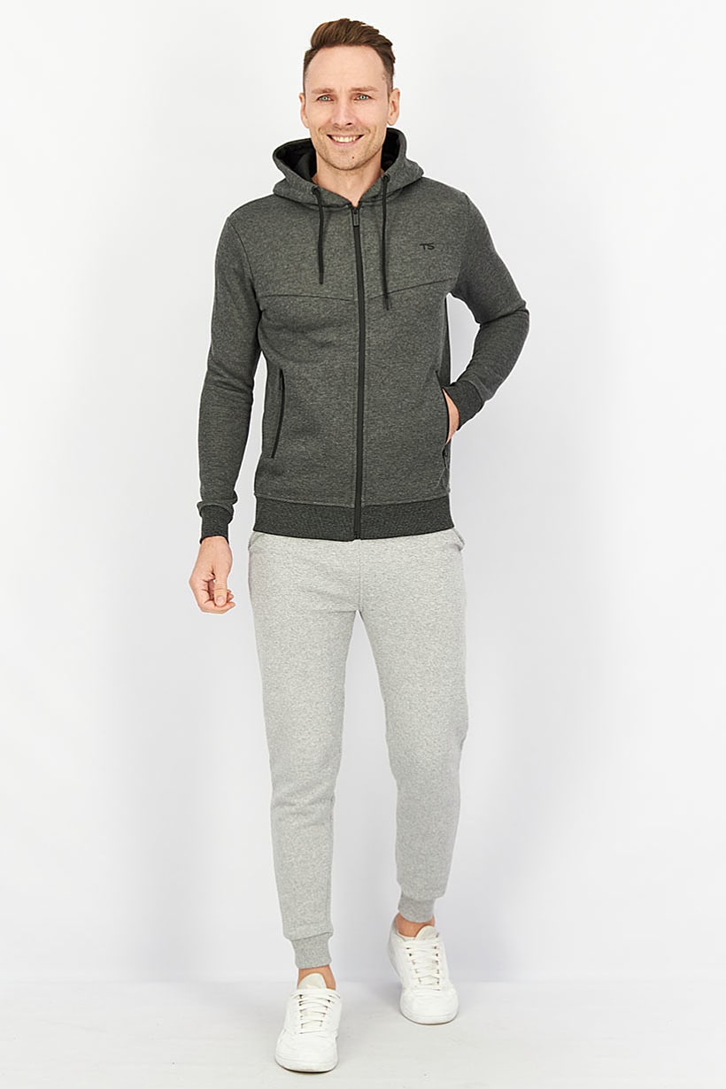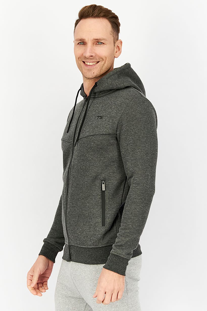 Men Clothing, Sportswear, men hooded brand logo long sleeve jacket dark grey