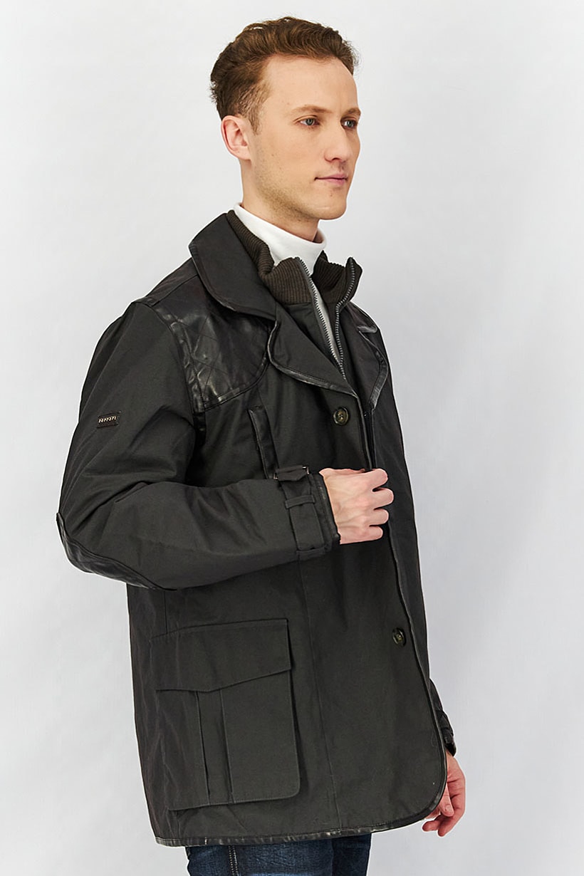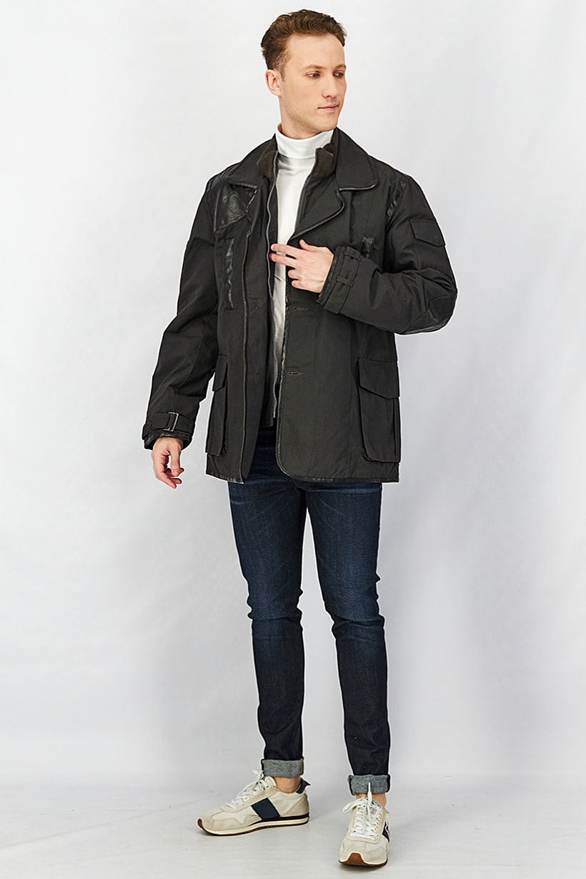 Dark Grey Men’s Parka Jacket with Long Sleeves and Pocket.