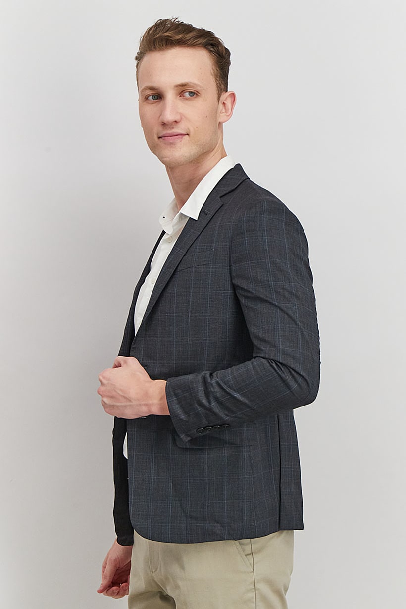 | sub_Categories | Men Clothing, Suits & Blazers, men modern fit notched collar plaid blazer jacket dark grey |