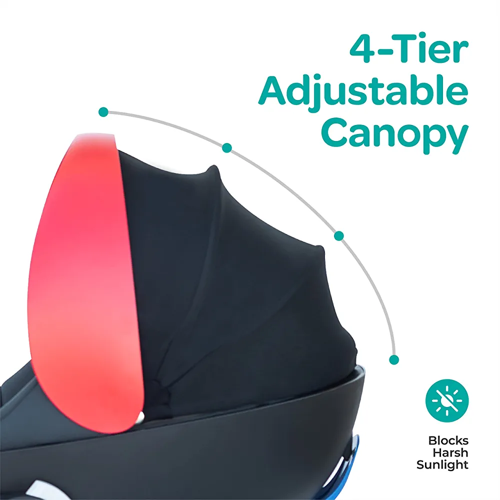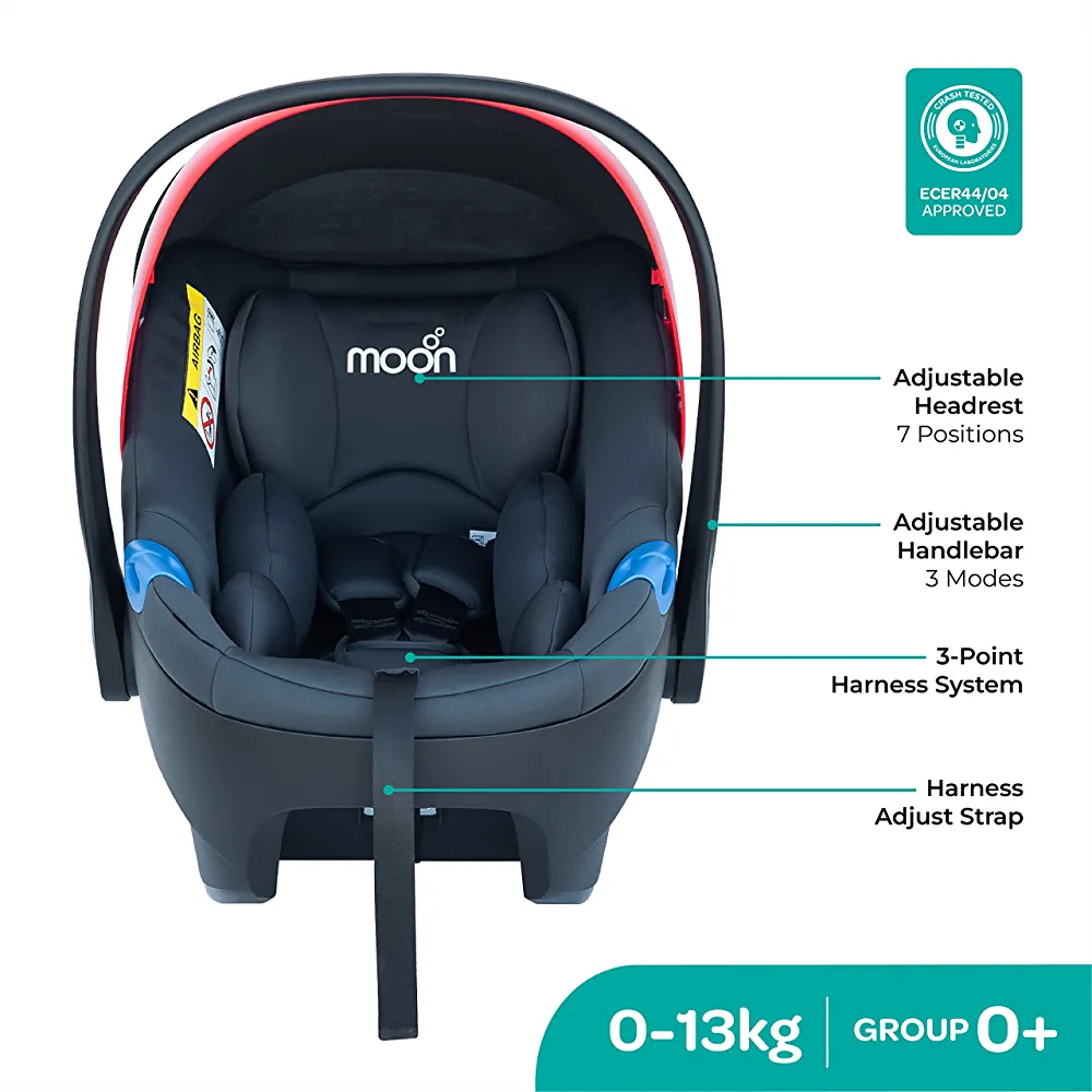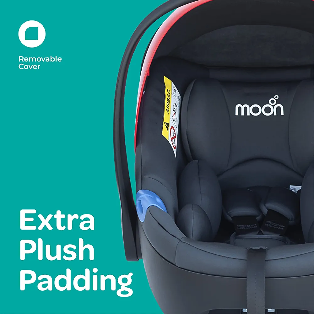 MOON Bibo Max Carrier Car Seat – Baby Travel Gear for infant – Rear-Facing Child Seat Carry Cot Adjustable Canopy Suitable for Group 0+ – Dark Grey