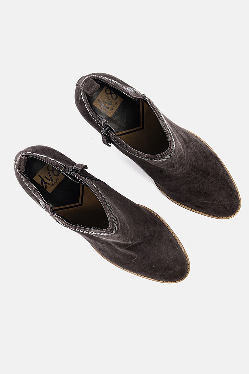 Dark Grey Suede Ankle Boots with Zipper for Women.