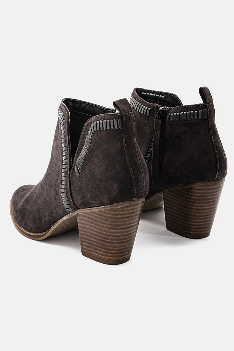 Women Suede Zip Closure Ankle Boots, Dark Grey