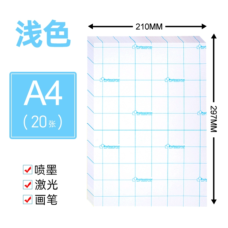 | nameOriginal | Dark heat transfer paper a4 pure cotton T-shirt transfer paper a3 light color heat transfer paper a4 washable sublimation transfer paper A4 laser inkjet printing heat transfer printing paper a5 heat transfer clothing paper |
